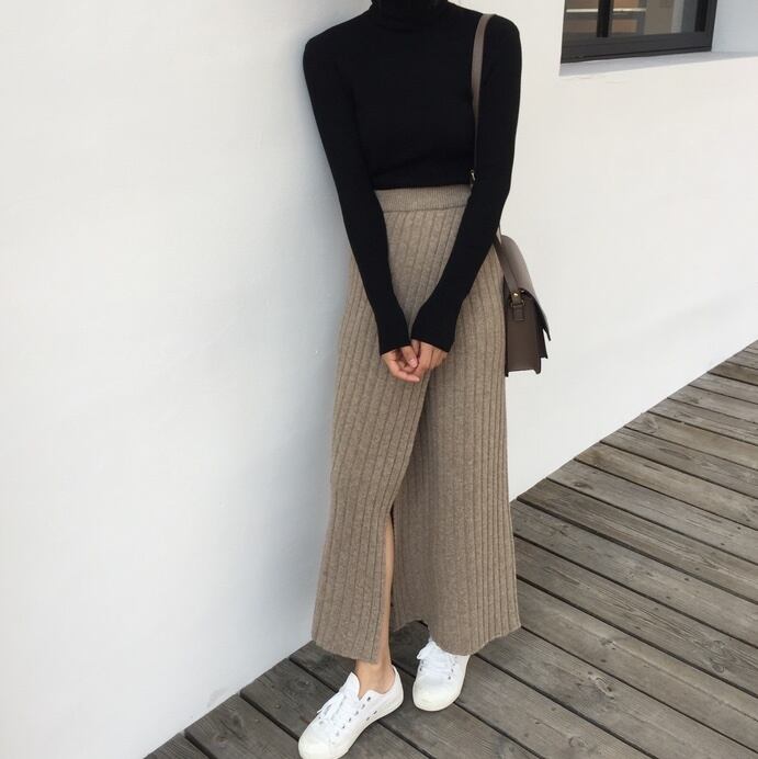 スカート ボトムス プリーツスカート ニットスカート ロング ロング丈 マキシ マキシ丈 9分丈 アンクル丈 タイト サイドスリット ニット 大人可愛い 大人 上品 おしゃれ お洒落 大人可愛い こなれ感 クール モード系 セクシー エレガント モダン 存在感 無地 秋 冬 ハロウィン クリスマス バレンタイン 10代 20代 30代 40代 50代 レディース 女性用 デート お出かけ 女子会 休日 ホテル レストラン 着回し 普段使い 暖かい モテ インスタ映え フリーサイズ 黒 ブラック