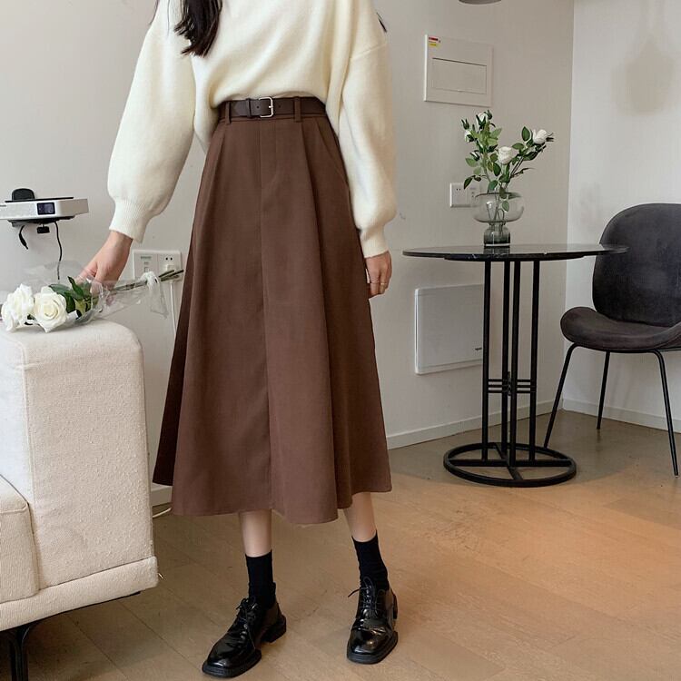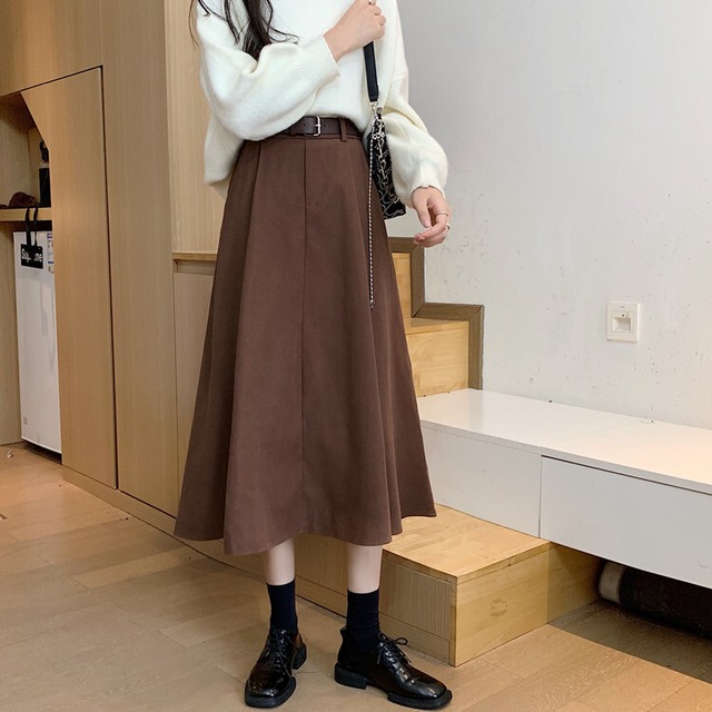 スカート ボトムス フレアスカート 膝下 ミモレ ミモレ丈 Aライン ベルト ハイウエスト 薄手 スウェード かわいい 大人可愛い シンプル カジュアル かっこいい こなれ感 ラフ キュート クール 無地 春 秋 冬 10代 20代 30代 40代 50代 60代 レディース 女性用 ママ 学生 通学 デート お出かけ 女子会 休日 イベント 旅行 ホテル レストラン 着回し 普段使い モテ 定番 インスタ映え S M L 白 ホワイト 黒 ブラック 茶色 ブラウン
