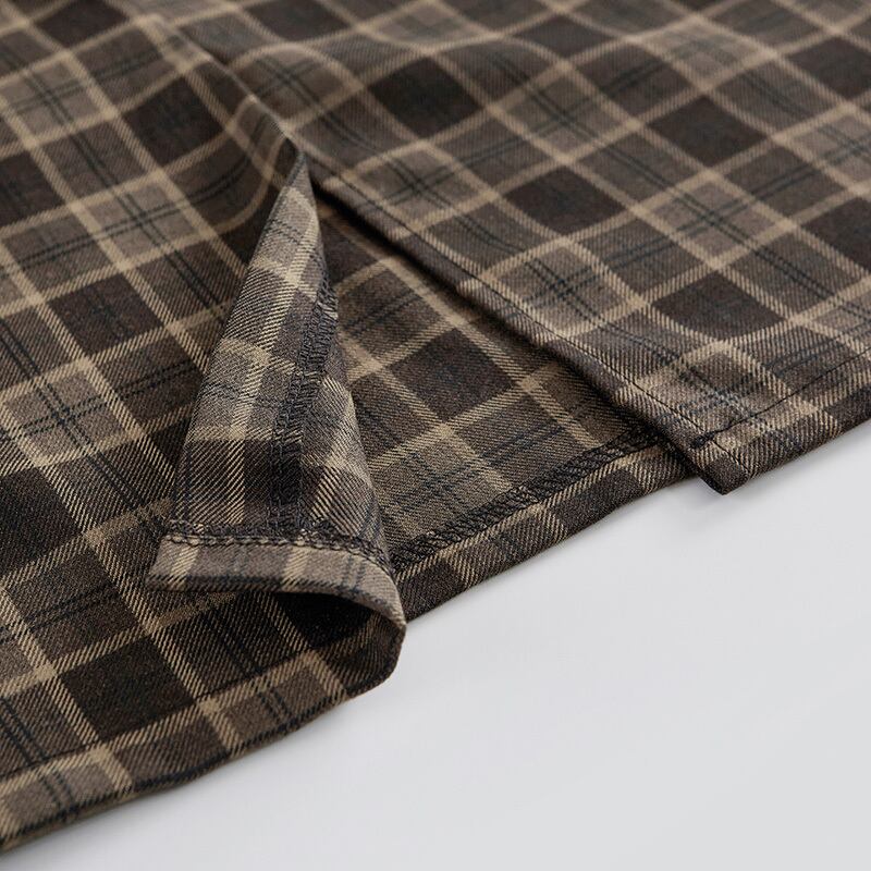ブラウンチェックのミディアム丈スカートです