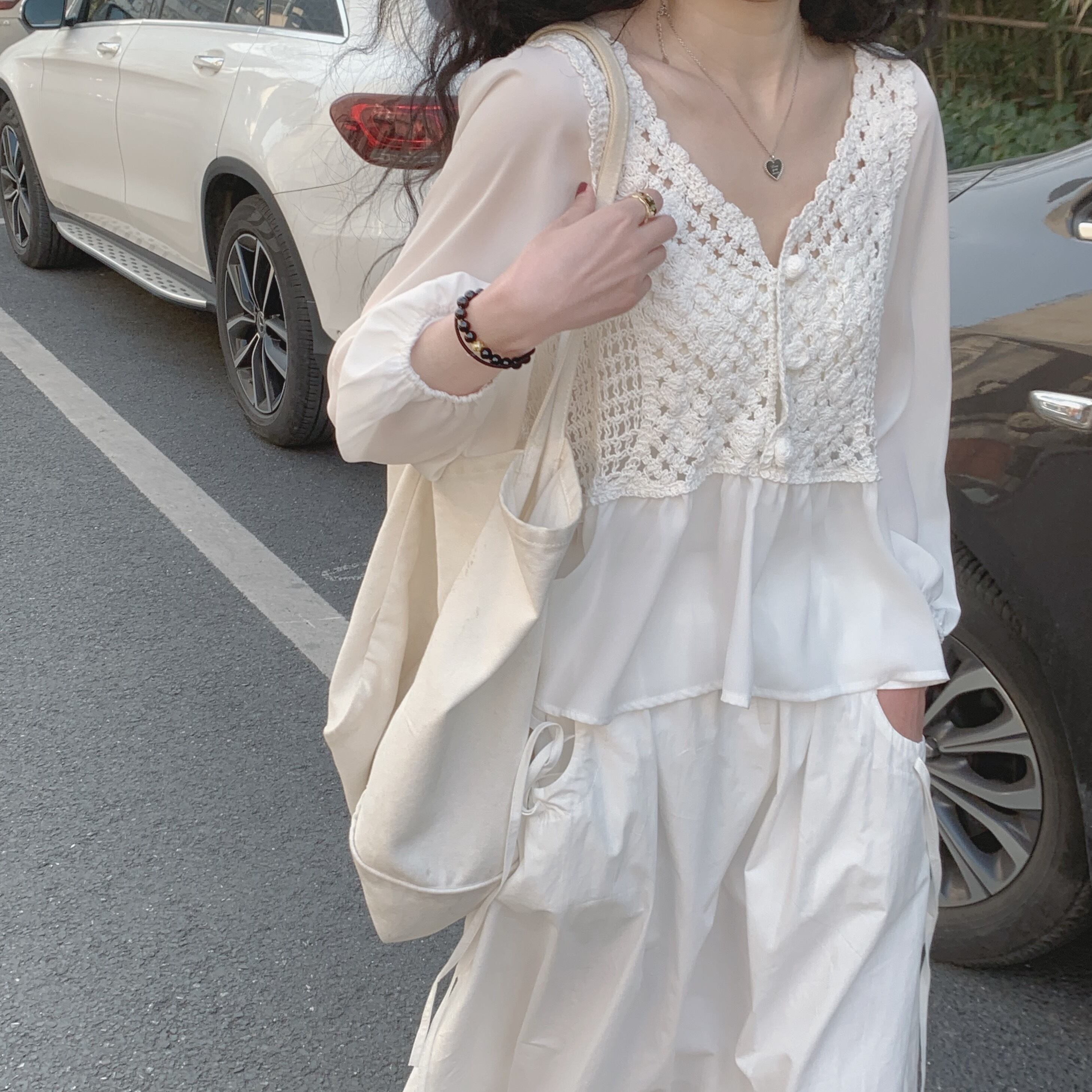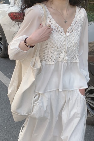 かぎ編み風のかわいいブラウスです。