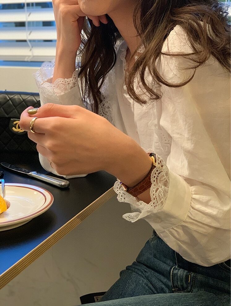 袖口にもレースフリルをあしらい細部までこだわりのディテール。シンプルデザインでオンオフ問わず着用して頂けます。