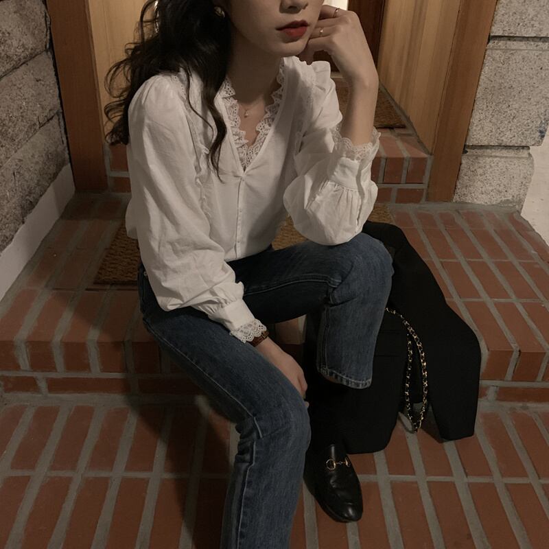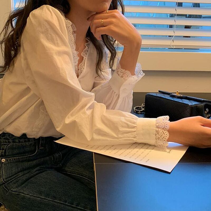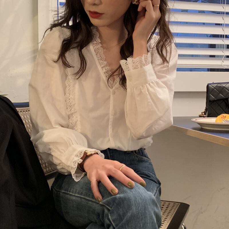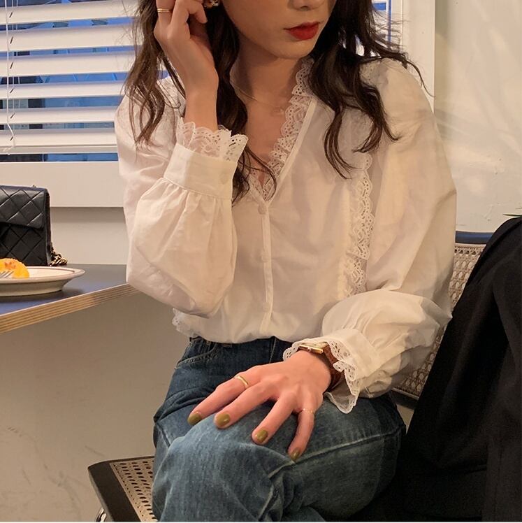 トップス シャツ ブラウス 白トップス 袖あり 長袖 Vネック 襟なし ワイド レース フリル 前開き 透け感 薄手 かわいい 大人可愛い 甘め きれいめ シンプル カジュアル 大人 上品 お洒落 大人女子 こなれ感 ガーリー フェミニン エレガント 主役級 抜け感 無地 春 秋 冬 20代 30代 40代 ママ 通勤 通学 デート お出かけ 女子会 休日 旅行 着回し 普段使い 重ね着 韓国系 オルチャン モテ 体系カバー 定番 トレンド 流行 インスタ映え S M L ホワイト