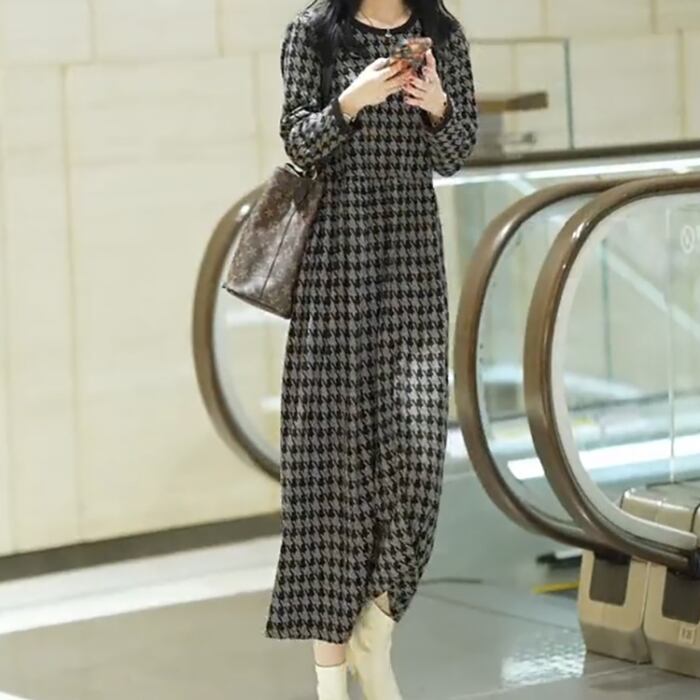 ワンピース ロング ロング丈 袖あり 長袖 ラウンドネック かわいい 大人可愛い きれいめ シンプル カジュアル 大人 上品 おしゃれ お洒落 大人女子 柄 格子柄 秋 冬 謝恩会 2020 2021 10代 20代 30代 レディース 女性用 デート お出かけ 女子会 イベント ホテル 着回し 普段使い 韓国 韓国系 オルチャン ファッション コーデ S M L XL 2XL 秋カラー