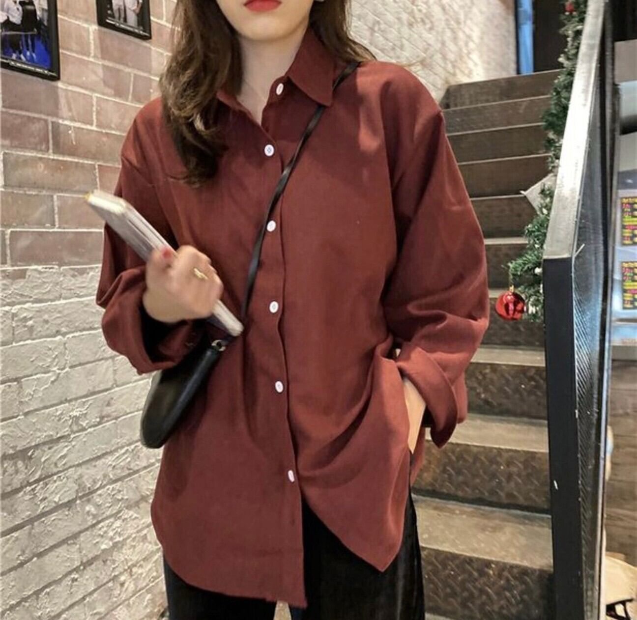 トップス シャツ 袖あり 長袖 襟付き ポロカラー 大人可愛い きれいめ シンプル カジュアル 大人 上品 おしゃれ お洒落 かっこいい レトロ 大人可愛い 大人女子 こなれ感 ラフ ルーズ 無地 春 秋 冬 10代 20代 30代 40代 50代 60代 レディース 女性用 ママ 休日 旅行 ホテル 着回し 普段使い 韓国 韓国系 ファッション コーデ 楽ちん モテ プレゼント サイズ フリーサイズ ホワイト ブラック ブルー ベージュ ピンク オレンジ ワインレッド マスタード グレーブルー ピンク