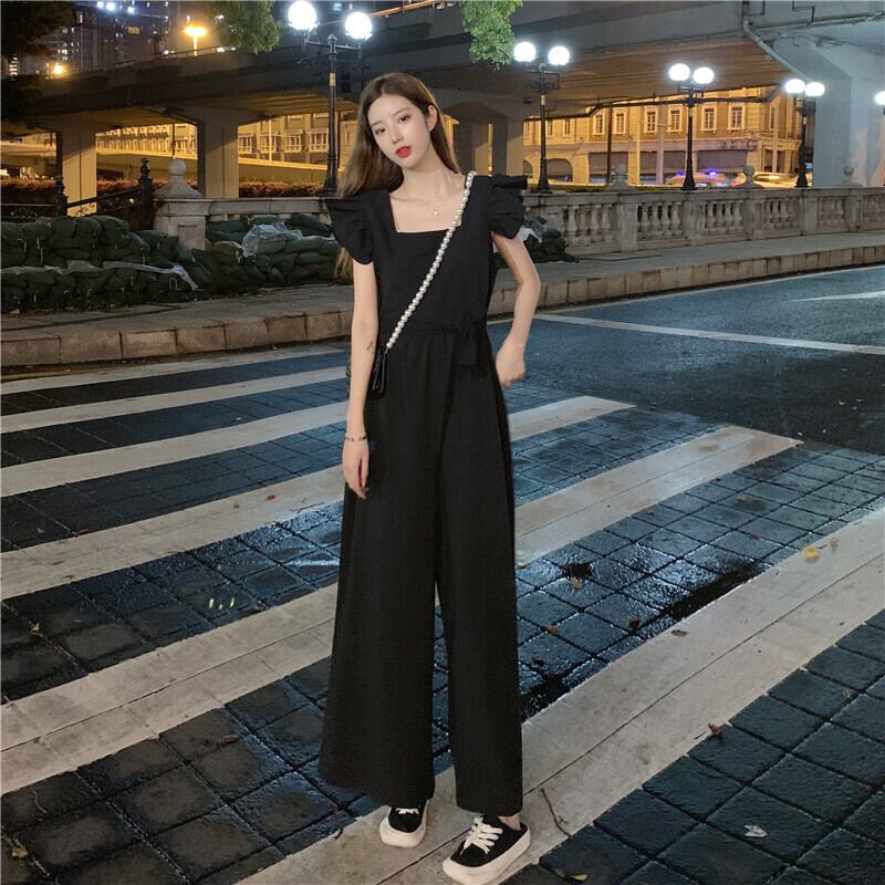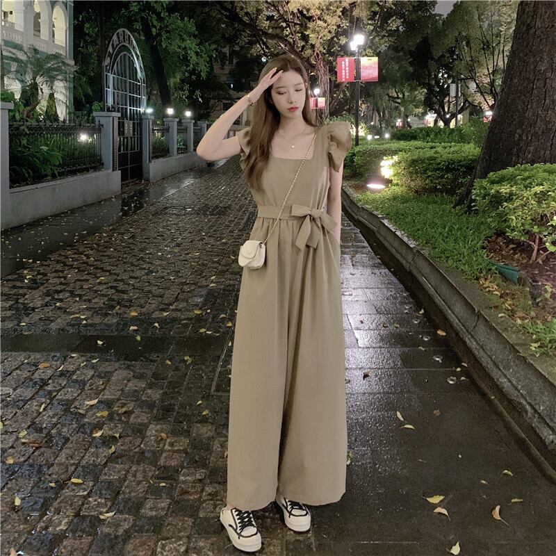 ボトムス ワンピース オールインワン ワイドパンツ ロング 袖なし ノースリーブ フレアスリーブ 萌袖 スクエアネック 襟なし ワイド フリル リボン ウエストリボン ハイウエスト かわいい きれいめ シンプル カジュアル 大人 おしゃれ かっこいい 大人可愛い クール 無地 春 夏 秋 冬 オールシーズン 誕生日 ハロウィン クリスマス 10代 20代 30代 レディース ママ 通学 デート お出かけ パーティー イベント 旅行 普段使い お揃い 韓国 楽ちん 脚長 サイズ S M ブラック カーキ