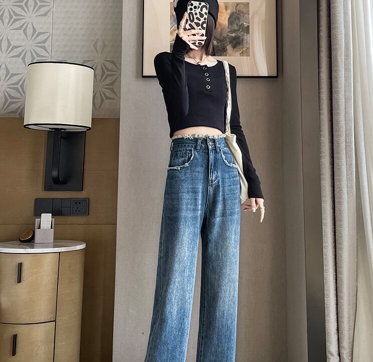 ボトムス パンツ Gパン ズボン デニムパンツ ワイドパンツ ロング ロング丈 ストレート ワイド ハイウエスト 綿 ポリエステル デニム ブルーデニム ビスコース カジュアル おしゃれ お洒落 こなれ感 クール 夏 10代 20代 レディース 女性用 女の子 デート お出かけ 休日 アウトドア 旅行 海 テーマパーク 水族館 映画館 カフェ カラオケ ドライブ ショッピング ファッション スタイル ダメージ 美脚 脚長 サイズ XS S M L XL 2XL ヴィンテージブルー