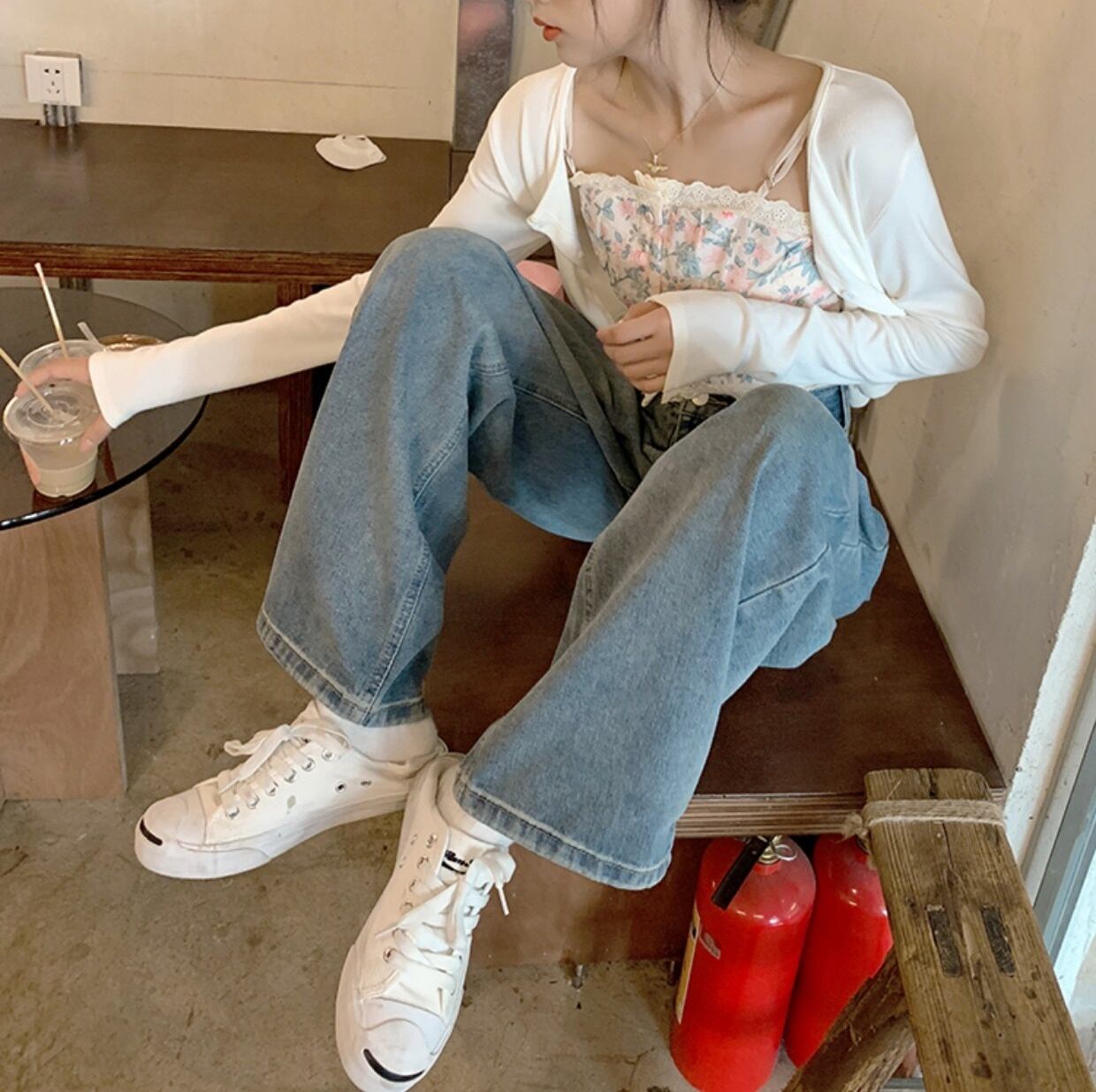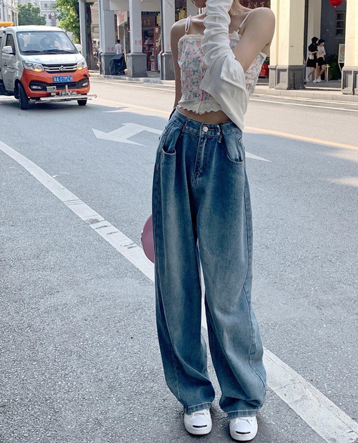 ゆったりラフに着こなせるストレートワイドデニムパンツ。