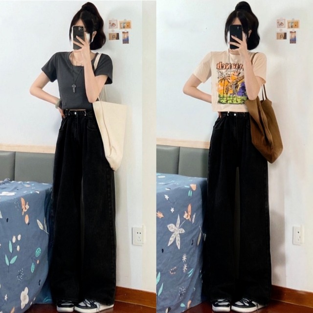 ハイウエストで脚長効果とトップスをショート丈やクロップド丈と合わせると好バランスに。オーバーシルエットで体系カバーも叶えてくれます。