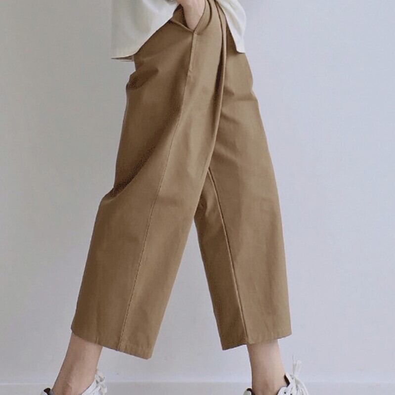 ラフな雰囲気がかわいいミモレ丈パンツ。