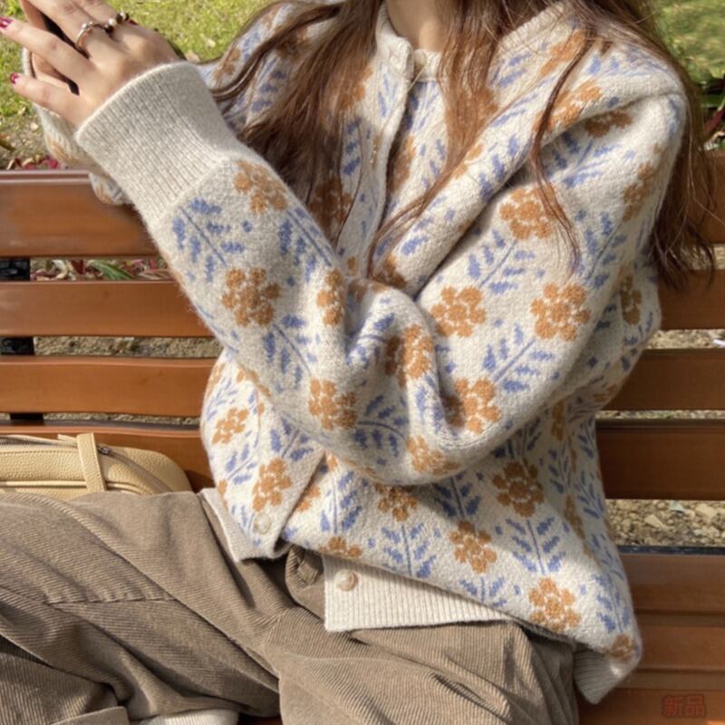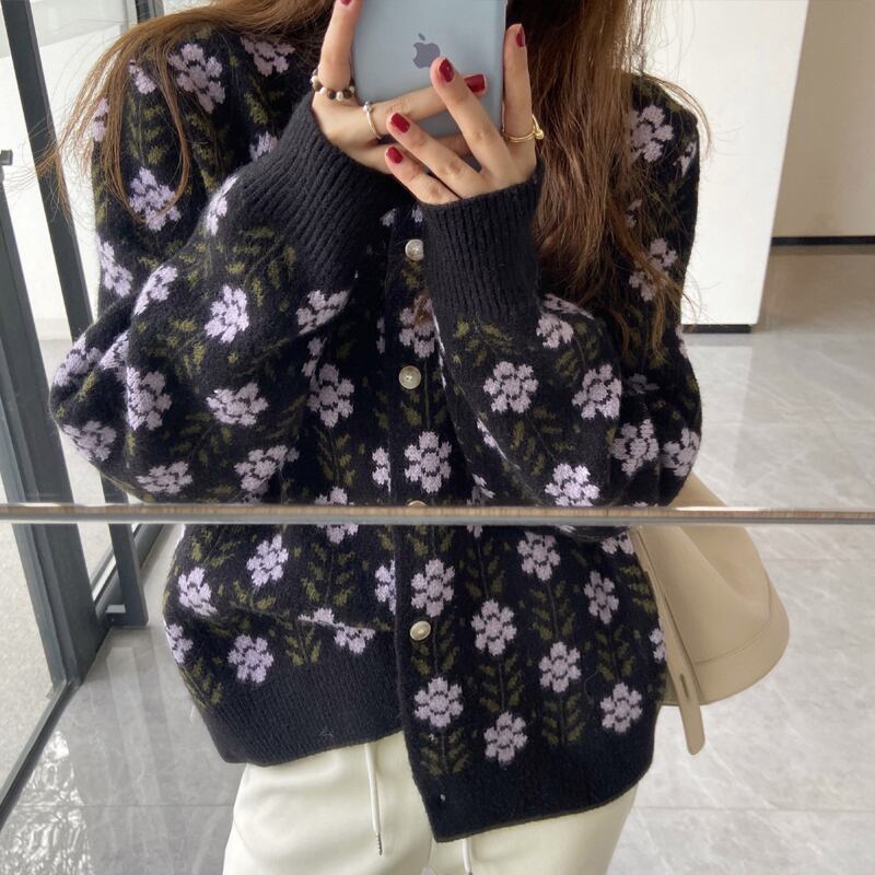 トップス セーター カーディガン 袖あり 長袖 ラウンドネック 襟なし ストレート もこもこ モコモコ ふわふわ 前開き 2way かわいい カジュアル おしゃれ お洒落 レトロ 大人可愛い ラブリー キュート 主役級 柄 花柄 フラワー 春 秋 冬 誕生日 母の日 10代 20代 30代 メンズ 女性用 ママ 学生 通学 デート 公園デビュー ガーデン 着回し 普段使い 重ね着 お揃い 双子 韓国 コーデ 楽ちん 暖かい ギフト S M L XL 2XL ブラック アプリコット ブラウン
