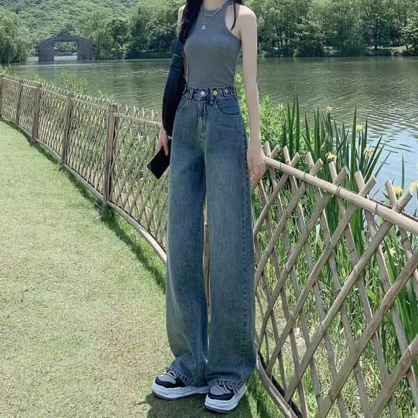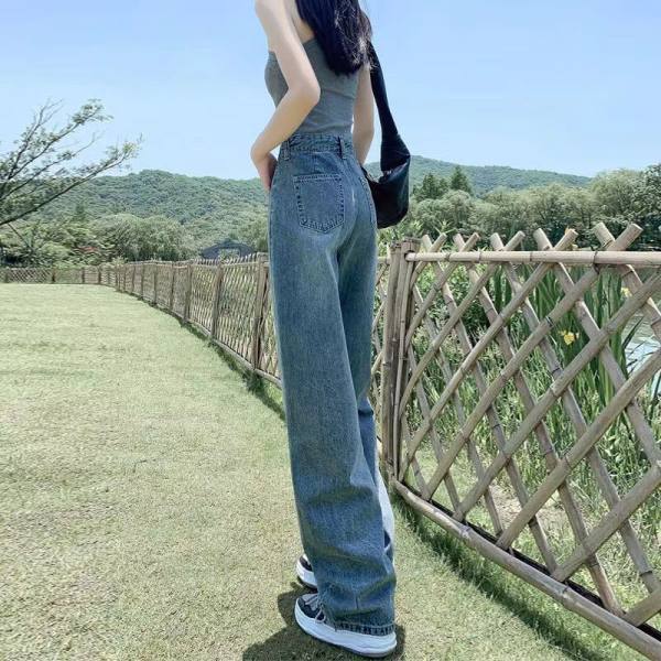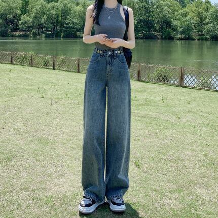ボトムス パンツ Gパン ズボン デニムパンツ ワイドパンツ ロング ロング丈 ストレート ワイド ハイウエスト 綿 ポリエステル デニム ブルーデニム ビスコース カジュアル おしゃれ お洒落 こなれ感 クール 夏 10代 20代 レディース 女性用 女の子 デート お出かけ 休日 アウトドア 旅行 海 テーマパーク 水族館 映画館 カフェ カラオケ ドライブ ショッピング ファッション スタイル ダボ ゆる ゆったり 美脚 脚長 サイズ