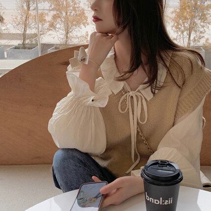 ニット ベスト 袖なし ニットベスト 重ね着 2セット 2ピース セットアップ トップス シャツ ブラウス 白シャツ 白トップス 袖あり 長袖 萌袖 Vネック ストレート スマート 前開き かわいい 大人可愛い きれいめ シンプル カジュアル 大人 上品 おしゃれ お洒落 大人女子 無地 春 秋 10代 20代 30代 40代 レディース デート お出かけ 着回し 普段使い ゆる ゆったり ファッション コーデ スタイル 楽ちん モテ 秋冬 オールシーズン