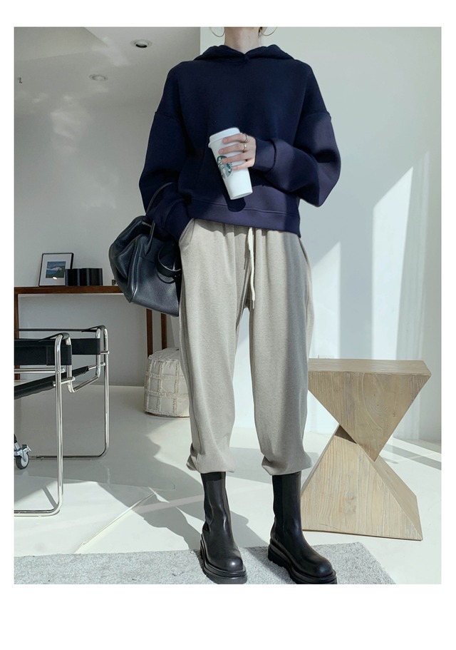 ゆったり着こなせるシンプルデザインのパーカーです。
