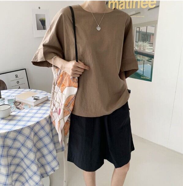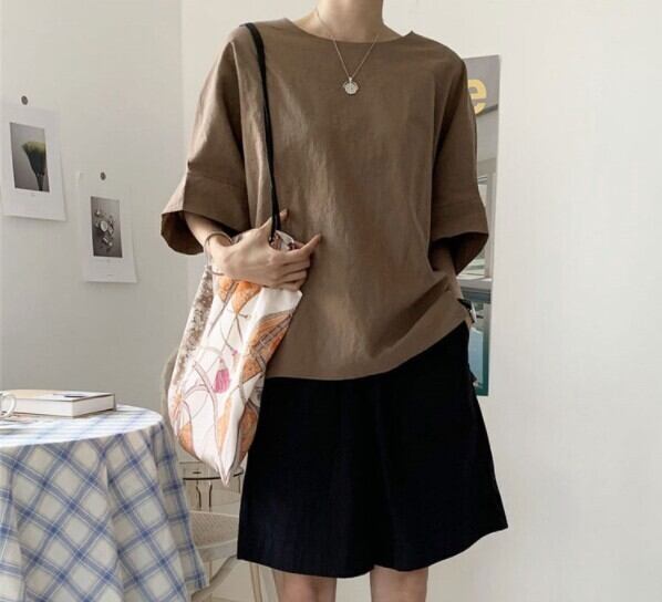 トップス シャツ ブラウス 白トップス 袖あり 5分袖 ラウンドネック きれいめ カジュアル 大人 上品 おしゃれ お洒落 かっこいい 大人女子 ラフ スポーティー クール モード系 エレガント フォーマル 抜け感 無地 春 夏 秋 母の日 10代 20代 30代 40代 50代 60代 レディース 女性用 ママ OL 学生 デート お出かけ 休日 運動 アウトドア イベント リゾート 旅行 普段使い スタイル 楽ちん モテ S M L XL ゆったり ホワイト ダークブラウン