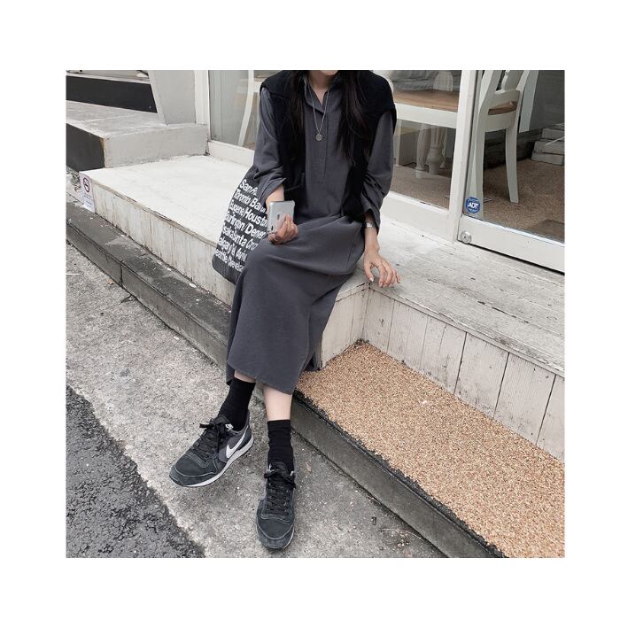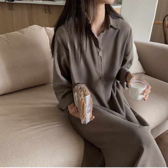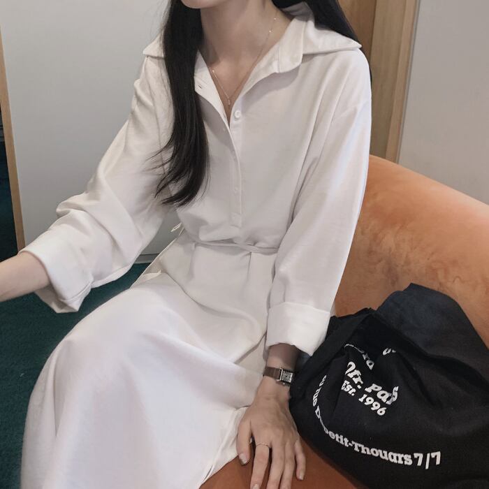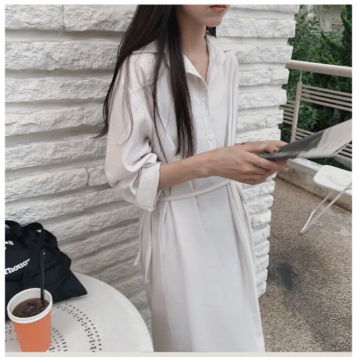 ワンピース シャツワンピース 袖あり 長袖 かわいい シンプル カジュアル おしゃれ お洒落 レトロ 無地 春 秋 冬 10代 20代 30代 レディース 女性用 ママ 学生 通学 デート お出かけ 公園デビュー 女子会 着回し 普段使い 重ね着 ファッション コーデ S M L ホワイト ブラウン グレー