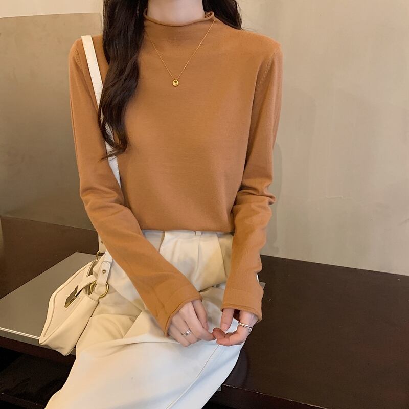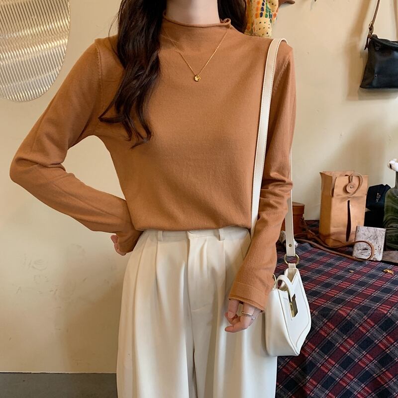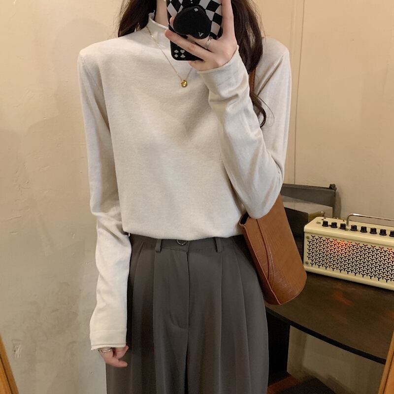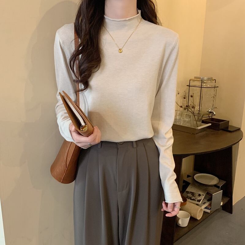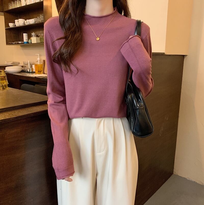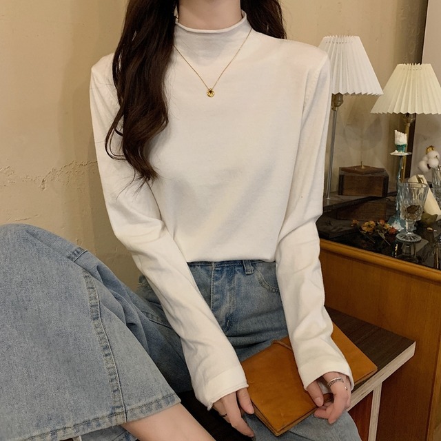 ハーフタートルネックで防寒対策もばっちり。シンプルデザインで着回し力抜群です。カラバリ豊富で色違いで欲しくなる1枚です。