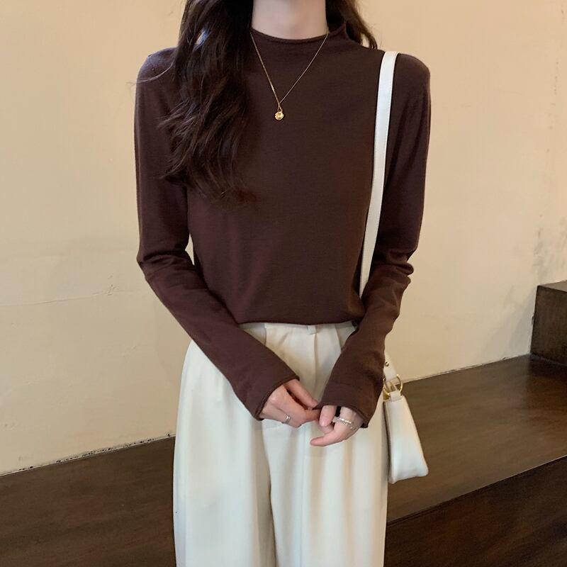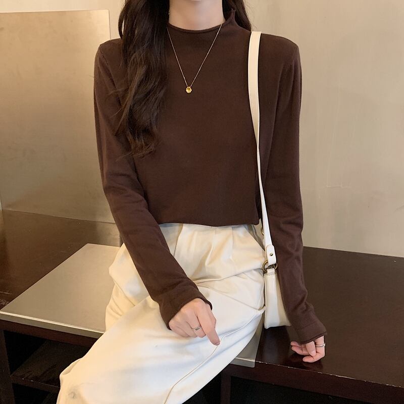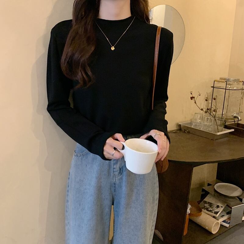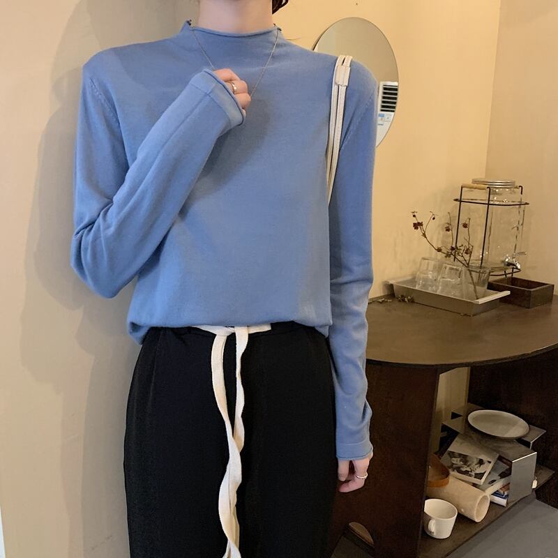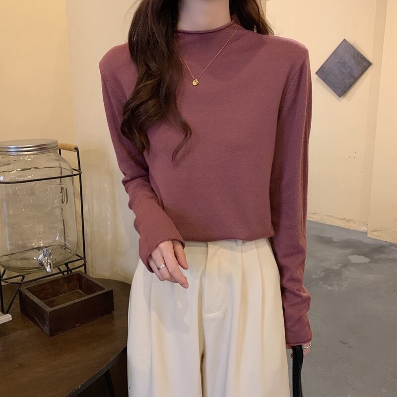 ハーフタートルネックで防寒対策もばっちり。シンプルデザインで着回し力抜群です。カラバリ豊富で色違いで欲しくなる1枚です。