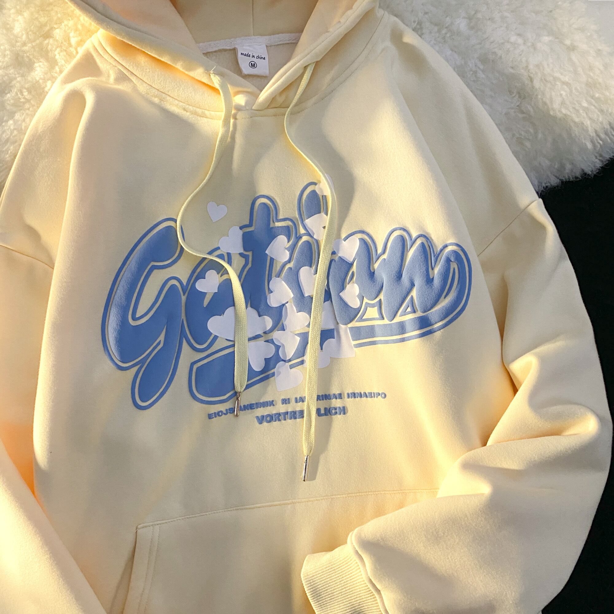 トップス パーカー 長袖 クルーネック フード付きネック ワイド たっぷり フードパーカー カジュアル おしゃれ スタイリッシュ 抜け感 使い勝手良い ラフ リラックス感 アクセント 韓国 ロゴ 春 秋 冬 クリスマス バレンタイン誕生日 10代 20代 30代 男女兼用 ユニセックス 学生 通学 デート お出かけ アウトドア ギフト お揃い お揃いコーデ S M L XL ミルクイエロー ブルー