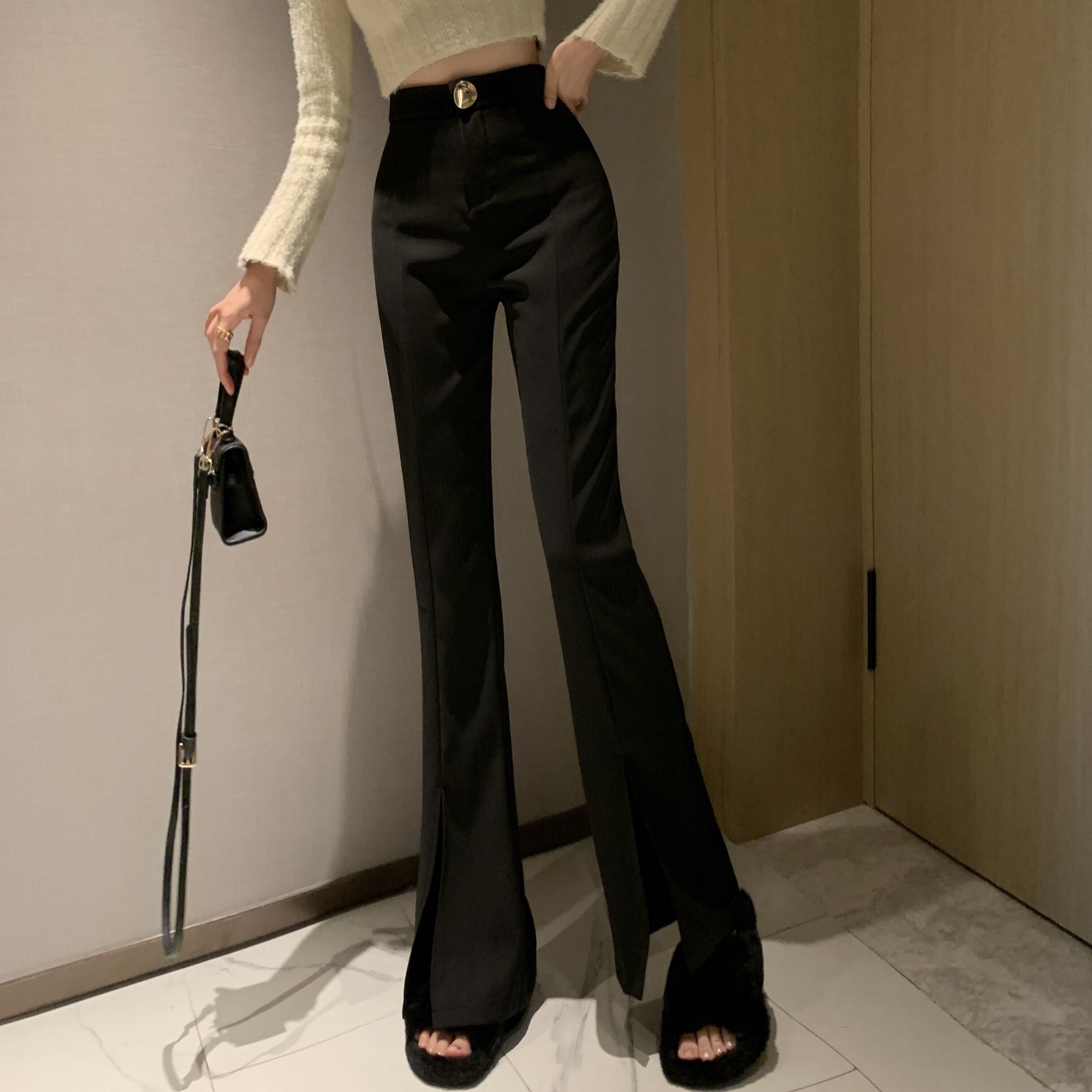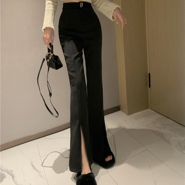 ブラックパンツ スリット ボトムス パンツ ズボン スキニーパンツ バギーパンツ ロング ロング丈 スリム タイト 細身 スリット ハイウエスト 大人可愛い きれいめ シンプル 大人 上品 おしゃれ お洒落 かっこいい 大人可愛い 大人女子 こなれ感 マニッシュ キュート 個性的 クール モード系 エレガント 存在感 抜け感 無地 10代 20代 30代 40代 レディース 女性用 ママ 通勤 学生 通学 デート お出かけ 女子会 イベント 旅行 ホテル レストラン 着回し 普段使い モテ 黒 ブラック