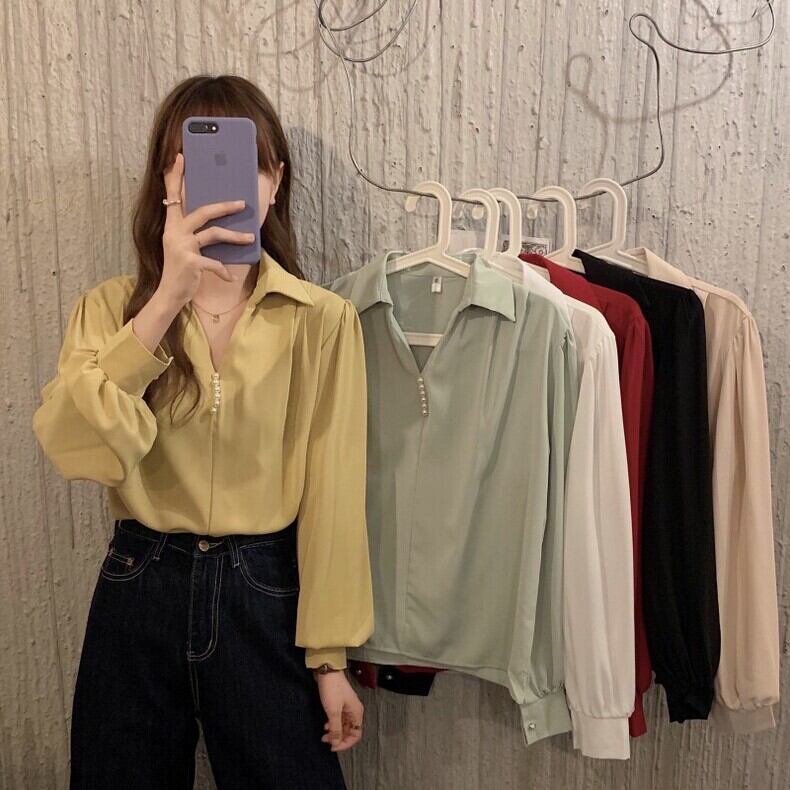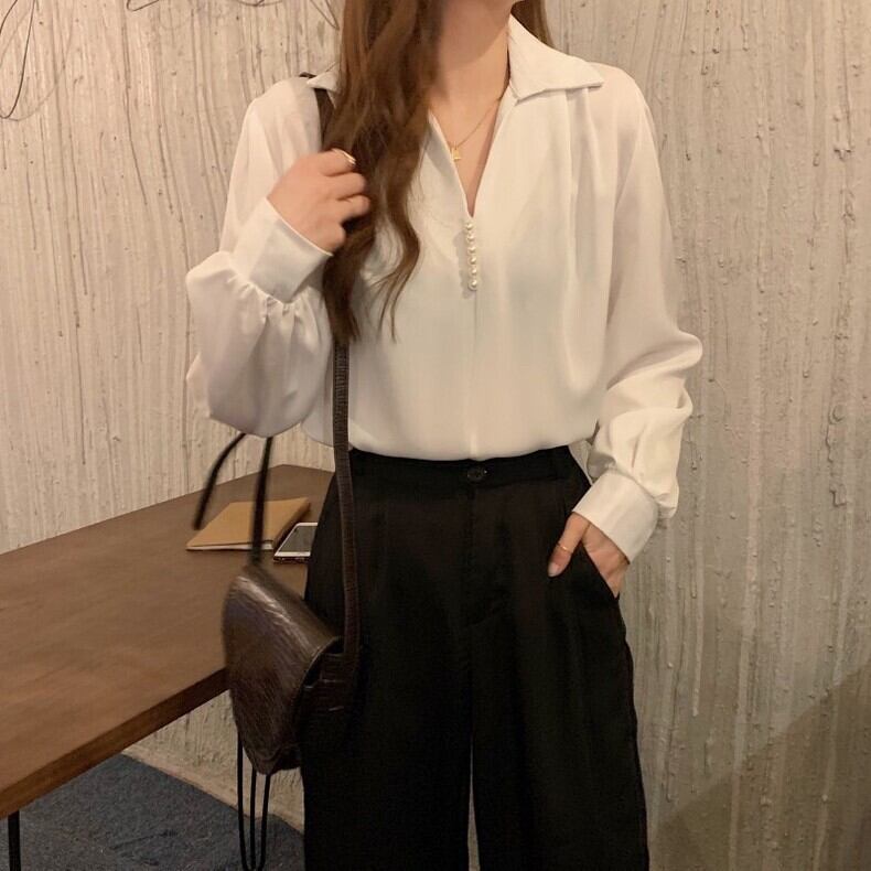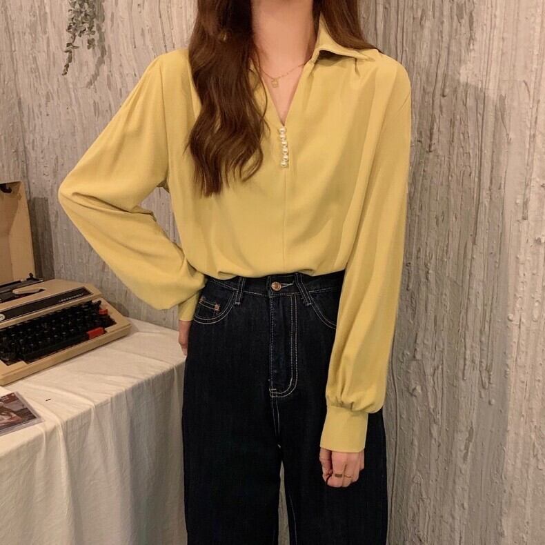 トップス シャツ ブラウス 袖あり 長袖 Vネック 襟なし かわいい 大人可愛い きれいめ シンプル 大人 上品 おしゃれ お洒落 かっこいい レトロ 大人可愛い 大人女子 キュート 個性的 セクシー エレガント 無地 春 夏 秋 二次会 10代 20代 30代 40代 50代 60代 レディース 女性用 ママ オフィス OL 通勤 学生 デート お出かけ 休日 イベント 旅行 海 ホテル 韓国 韓国系 モテ プレゼント フリーサイズ ホワイト ブラック ベージュ イエロー