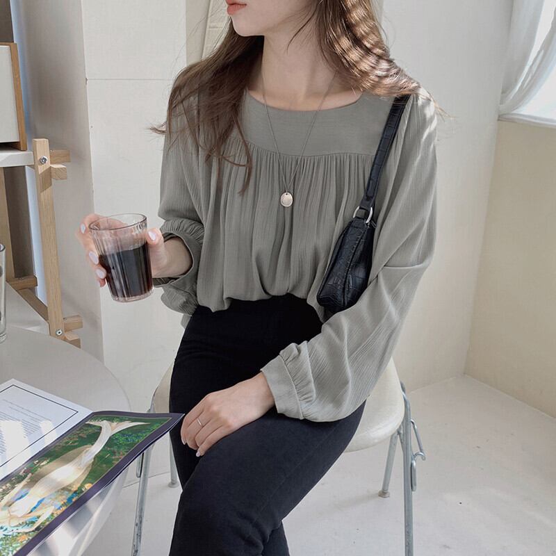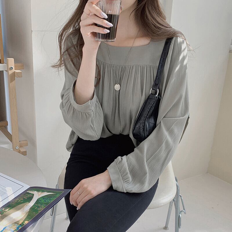 トップス ブラウス カットソー 白トップス 袖あり 長袖 スクエアネック シフォン かわいい 大人可愛い きれいめ シンプル 大人 上品 ガーリー 無地 春 夏 20代 30代 40代 レディース 女性用 ビジネス OL 通勤 学生 通学 デート お出かけ 女子会 お泊まり 休日 リゾート 旅行 S M L XL 白 ホワイト カーキ