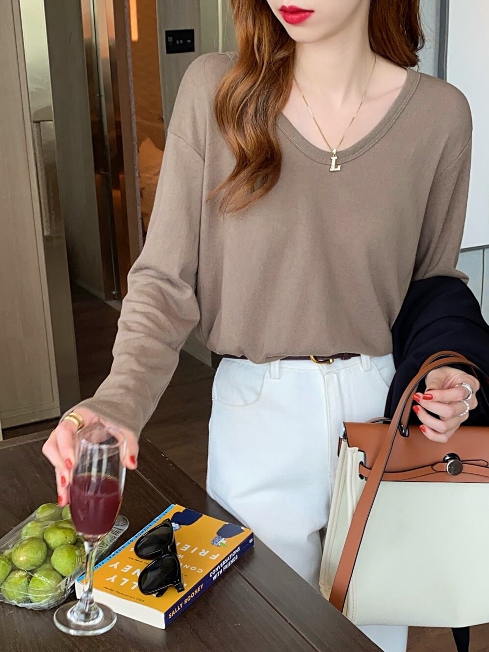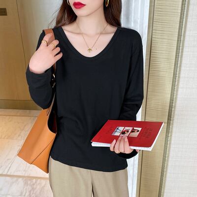 トップス Tシャツ 袖あり 長袖 ラウンドネック 襟なし ストレート ふんわり かわいい かっこいい カジュアル おしゃれ お洒落 大人可愛い ラブリー キュート フォーマル 無地 春 夏 秋 冬 誕生日 母の日 10代 20代 30代 40代 レディース 女性用 ママ 学生 通学 デート 公園デビュー ガーデン 着回し 普段使い 重ね着 お揃い 双子 韓国 コーデ 楽ちん ギフト フリーサイズ ブラックブラウンホワイトグリーンブルー