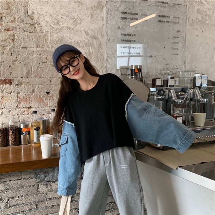袖の切り替えが個性的でオシャレなデザインのトップスです。