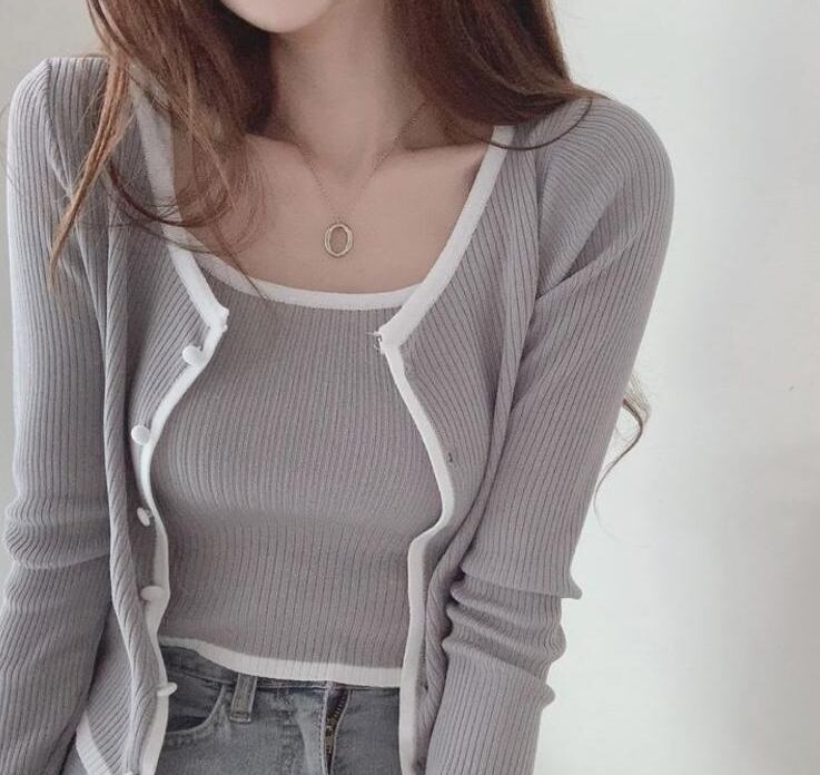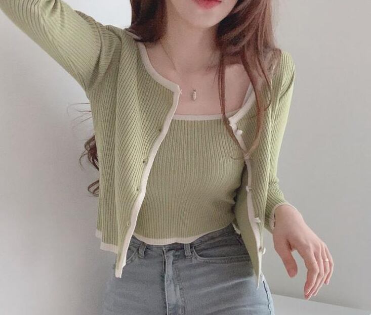 トップス インナー ニットソー カーディガン 上着 キャミソール ショート ショート丈 袖なし 袖あり ノースリーブ 長袖 ラウンドネック スリム ストレート ボタン ニット サマーニット 2点セット 大人可愛い カジュアル お洒落 セクシー 春 夏 秋 10代 20代 レディース メンズ 女性用 女の子 デート お出かけ テーマパーク 水族館 映画館 カフェ カラオケ ドライブ ショッピング 重ね着 サイズ ワンサイズ 色展開 白 緑 グレー ピンク アプリコット