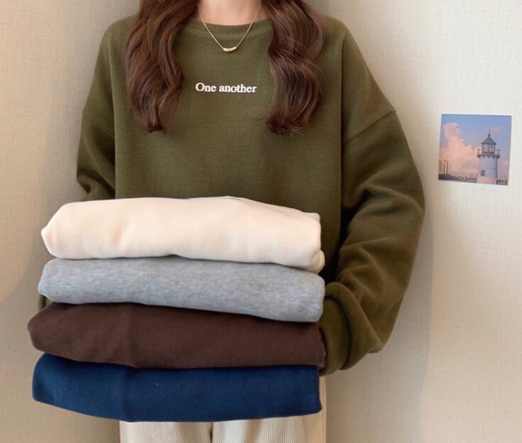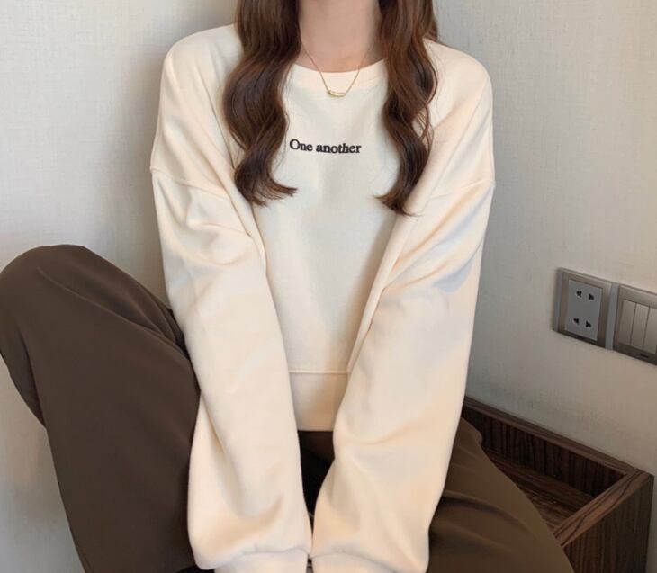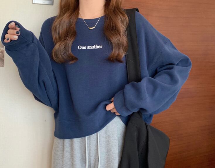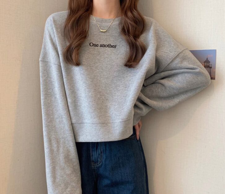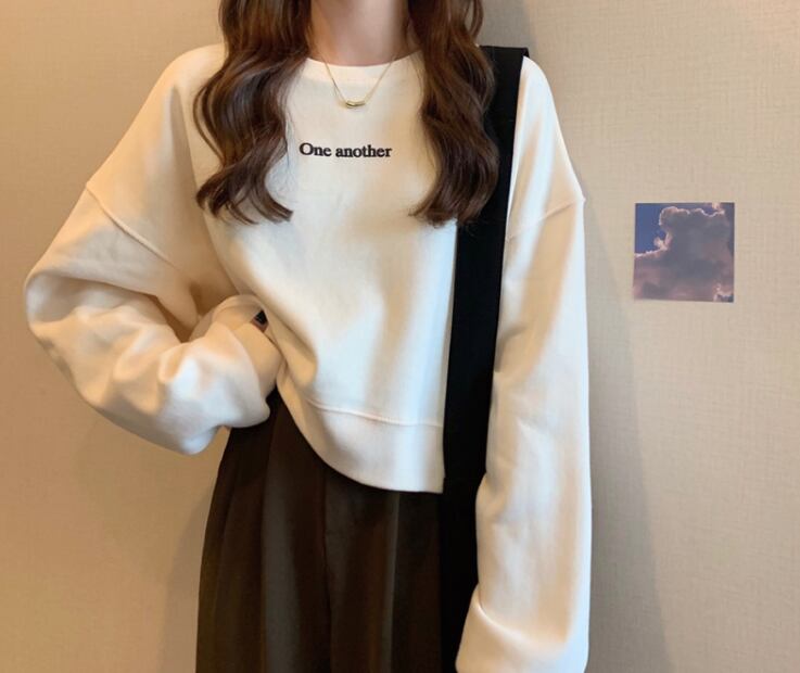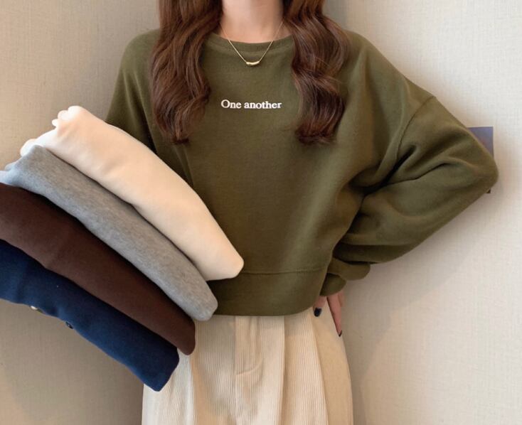 トップス スウェット スウェットシャツ ショート丈 袖あり 長袖 ラウンドネック 襟なし ストレート ルーズ シンプル カジュアル おしゃれ お洒落 ラフ 文字 春 秋 10代 20代 レディース 女性用 女の子 お出かけ 休日 テーマパーク 水族館 映画館 カフェ カラオケ ドライブ ショッピング 普段使い ファッション 楽ちん 定番 サイズ ワンサイズ 色展開 緑 グリーン 灰色 グレー クリーミーホワイト ネイビー コーヒー 紺