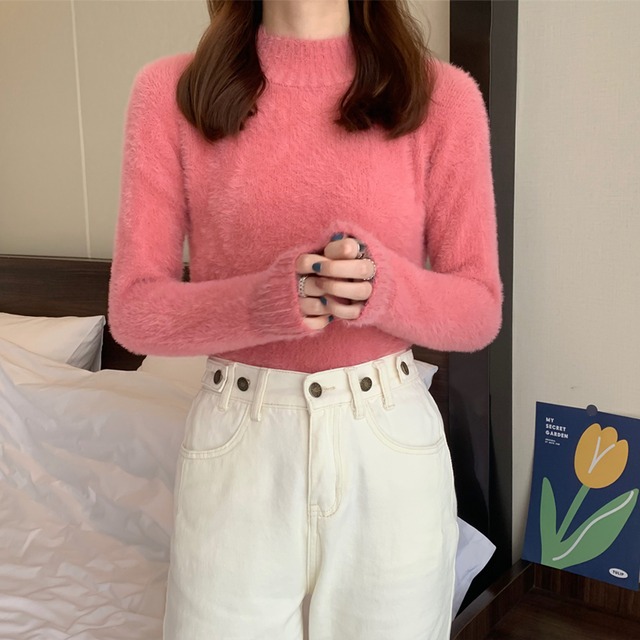 トップス セーター 袖あり 長袖 ハーフタートルネック 襟なし ストレート ふわふわ かわいい カジュアル おしゃれ お洒落 レトロ 大人可愛い ラブリー キュート 主役級 無地 春 秋 冬 誕生日 パーティー クリスマスイベント 10代 20代 30代 40代 レディース 女性用 ママ 学生 通学 デート 公園デビュー 着回し 普段使い 重ね着 お揃い 双子 韓国 コーデ 楽ちん ギフト S M L ホワイト パープル ブルー ピンク ブラック アプリコット
