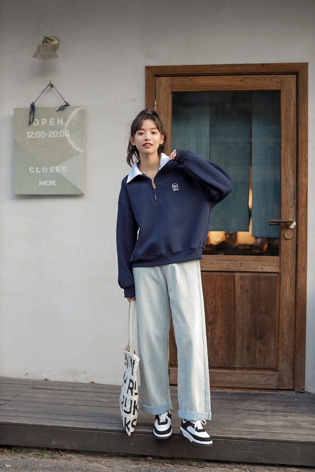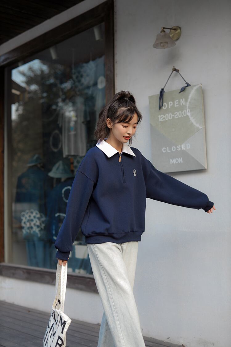 トップス スウェット 長袖 スリットネックストレート カジュアル おしゃれ スタイリッシュ 抜け感 使い勝手良い ラフ リラックス感 スポーティー アクセント 切り替え 韓国 無地 春 秋 冬 クリスマス バレンタイン デイリー 10代 20代 30代 40代 レディース 男女兼用 ユニセックス 学生 通学 デート お出かけ アウトドア ギフト お揃い お揃いコーデ S M L ダークブルー ライトグレー