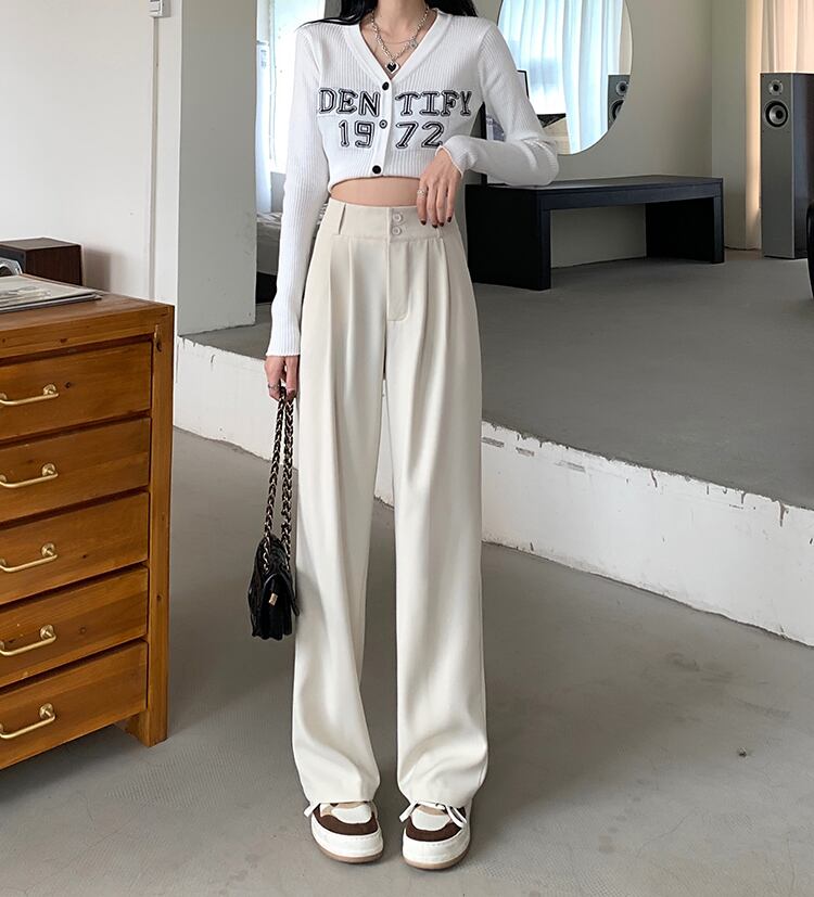 薄めのハイウエストパンツ。