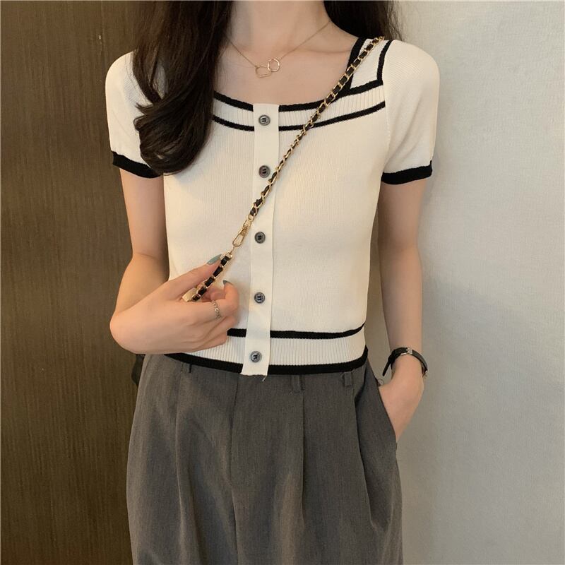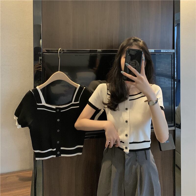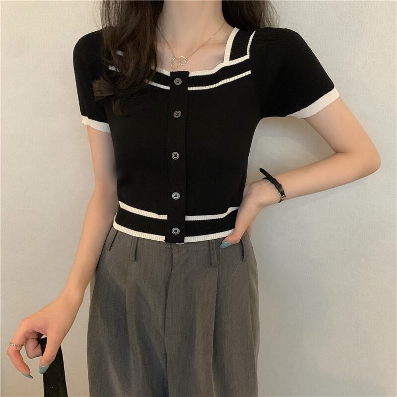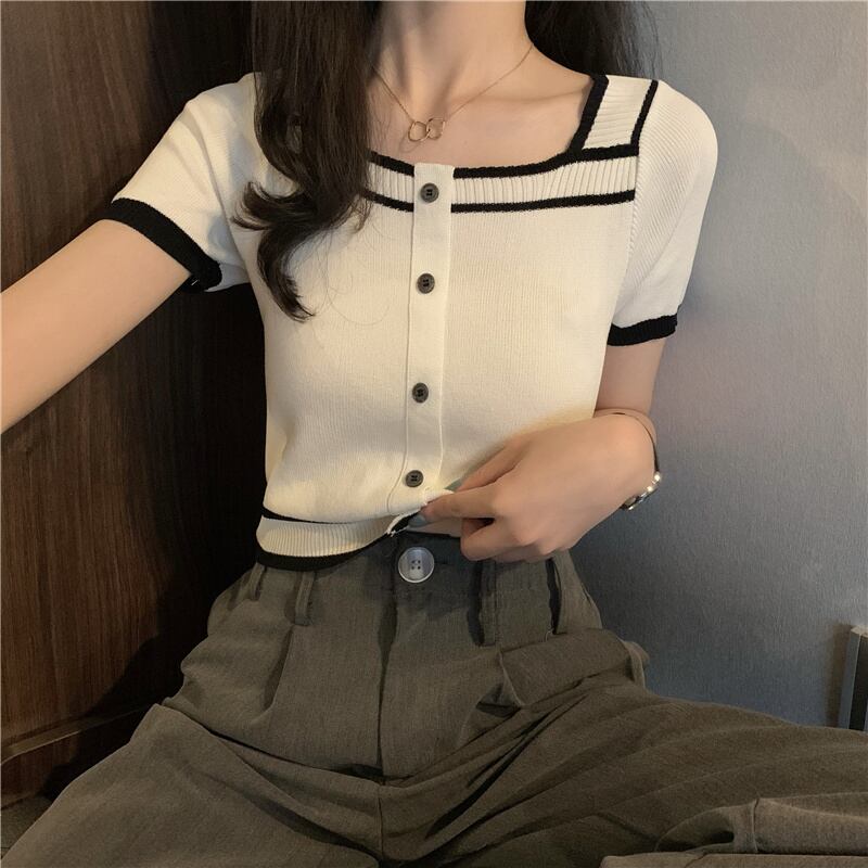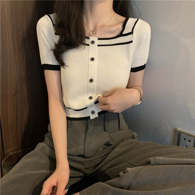 トップス Tシャツ ニット 襟なし 袖あり 半袖 スクエアネック ストレート 短丈 かわいい カジュアル おしゃれ かっこいい お洒落 レトロ 大人可愛い ラブリー キュート 存在感 無地 春 夏 秋 冬 誕生日クリスマス デート10代 20代 30代 レディース 女性用 学生 通学 通勤 デート 公園デビューイベント 着回し 普段使い 重ね着 お揃い 双子 韓国 コーデ 楽ちん ギフト フリーサイズ ホワイト ブラック