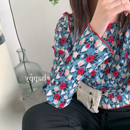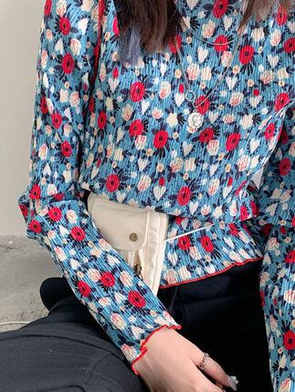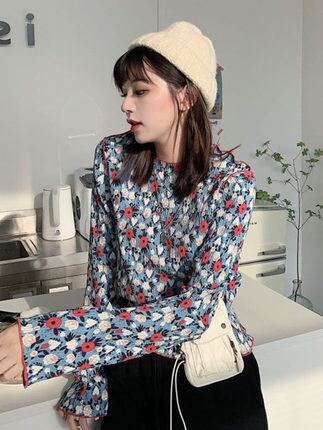 ブラウス トップス 袖あり 長袖 ラウンドネック 襟なし ストレート ふんわり かわいい カジュアル おしゃれ お洒落 レトロ 大人可愛い ラブリー キュート 主役級 花柄 春 夏 秋 冬 誕生日 母の日 お出掛け 10代 20代 30代 40代 レディース 女性用 ママ 学生 通学 デート 公園デビュー ガーデン 着回し 普段使い 重ね着 お揃い 双子 韓国 コーデ ギフト S M L XL 2XL 3XL ブルー