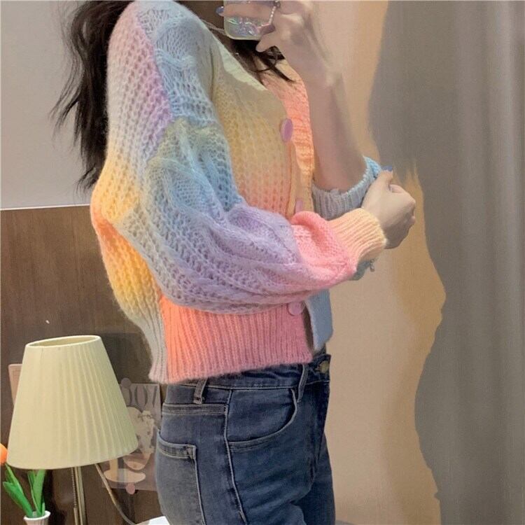 個性的なグラデーションカラーの短丈ニットカーディガンです。