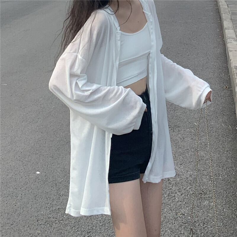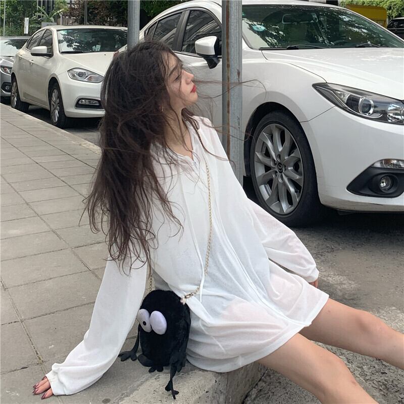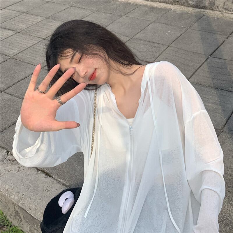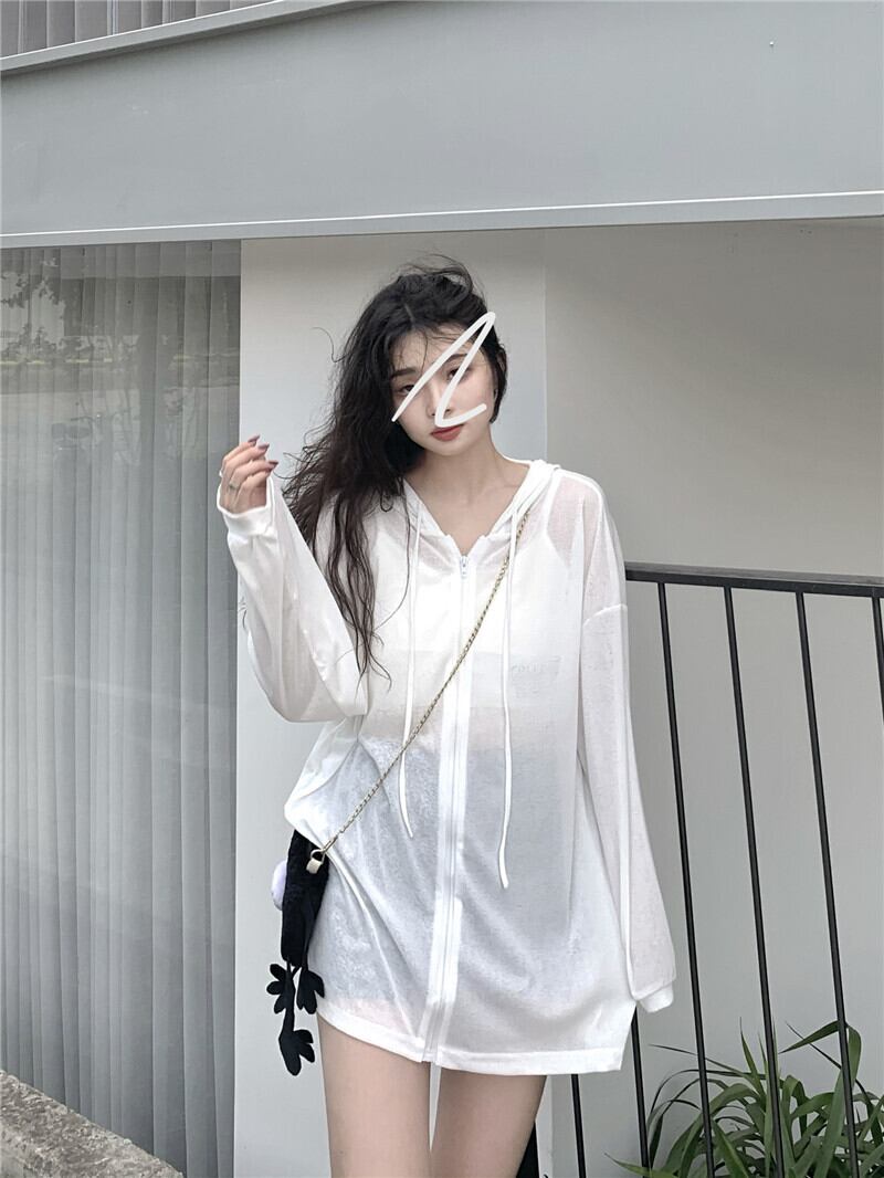 ミニ丈のボトムスと高相性なシースルーカーディガン。