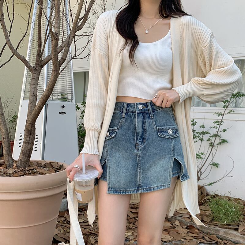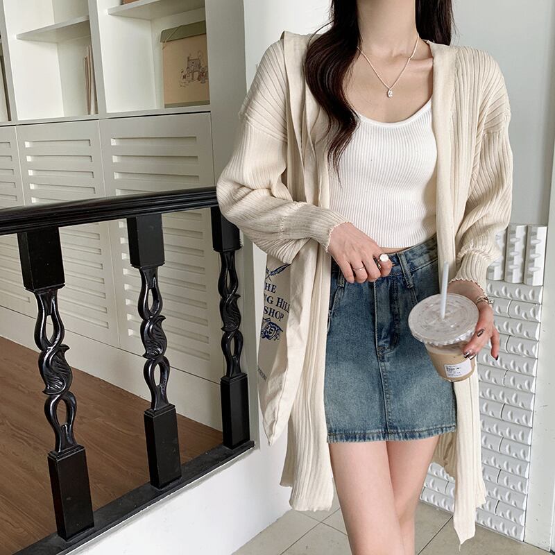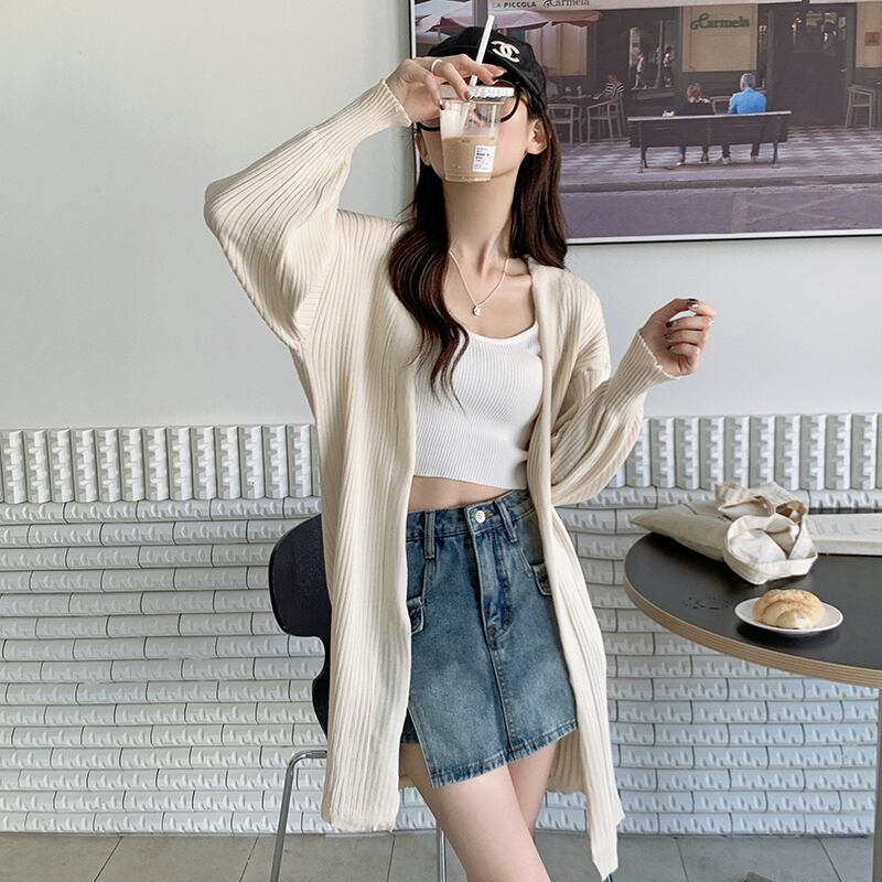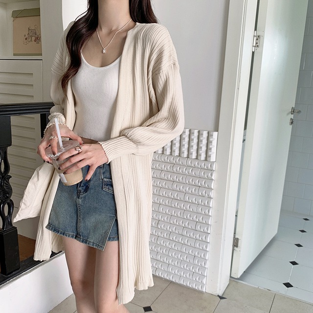 デニムとの相性抜群のリブ調ロングカーディガン。