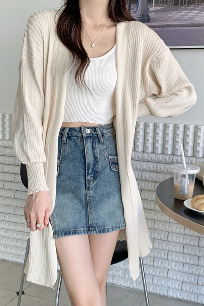 ロングカーディガン トップス カーディガン 上着 部屋着 袖あり 長袖 パフスリーブ スリム タイト 前開き かわいい かっこいい カジュアル お洒落 ラブリー キュート ガーリー 主役級 存在感 無地 春 秋 冬 誕生日 デート お出掛け 10代 20代 30代 40代 学生 女子会 お泊まり 休日 普段使い 重ね着 お揃い 双子 韓国 韓国系 楽ちん 体系カバー プレゼント ギフト インスタ映え フリーサイズ アプリコット