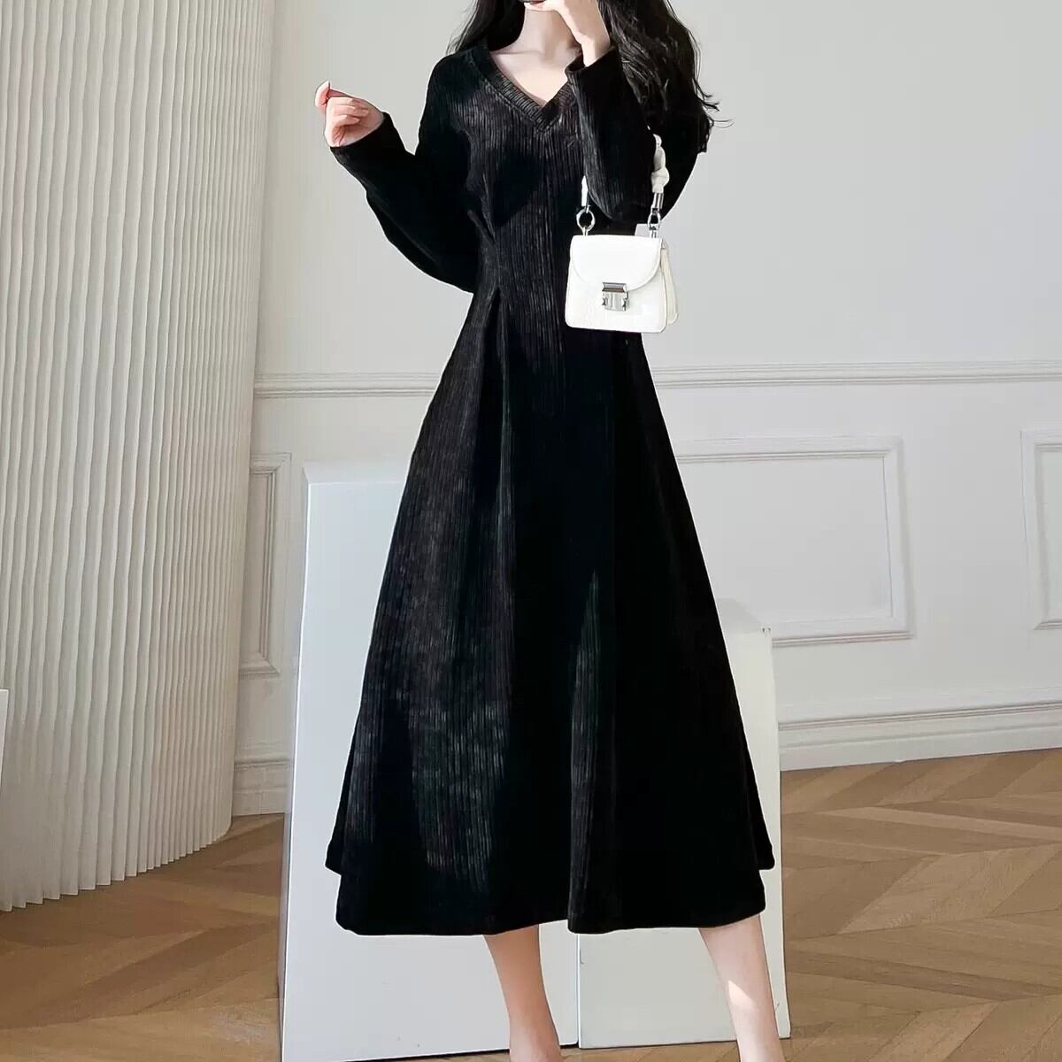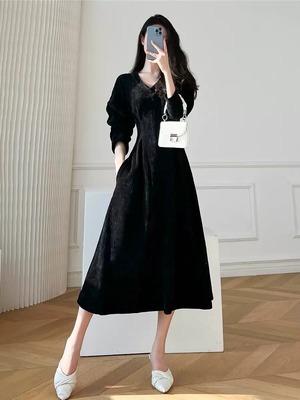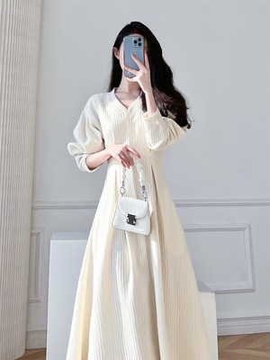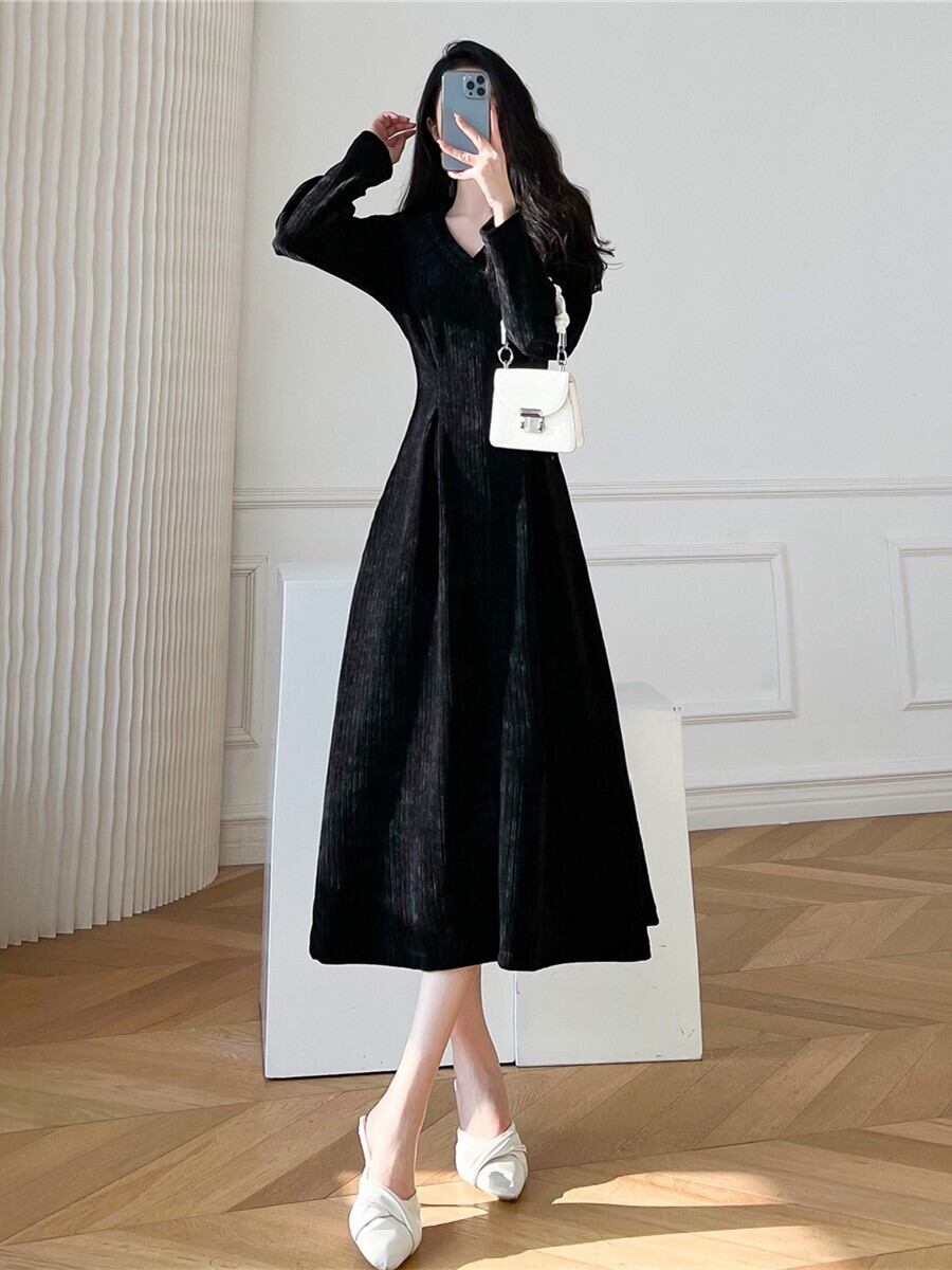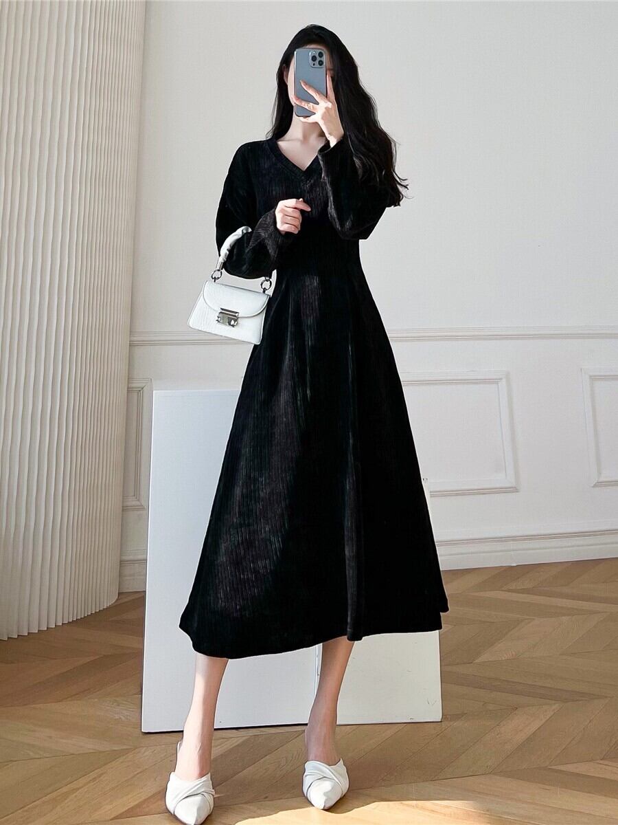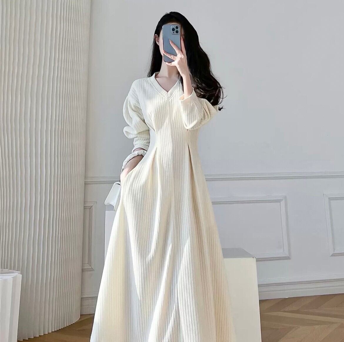 ワンピース フレンチワンピース ロング ロング丈 袖あり 7分袖 Vネック スリム 細身 Aライン 大人可愛い きれいめ シンプル カジュアル 大人 上品 おしゃれ レトロ 大人可愛い 大人女子 エレガント 主役級 存在感 無地 春 秋 誕生日 入学式 10代 20代 30代 40代 50代 60代 レディース ママ OL 学生 デート お泊まり 休日 イベント 旅行 普段使い 韓国 韓国系 楽ちん モテ S M L XL 2XL 白 ホワイト 黒 ブラック