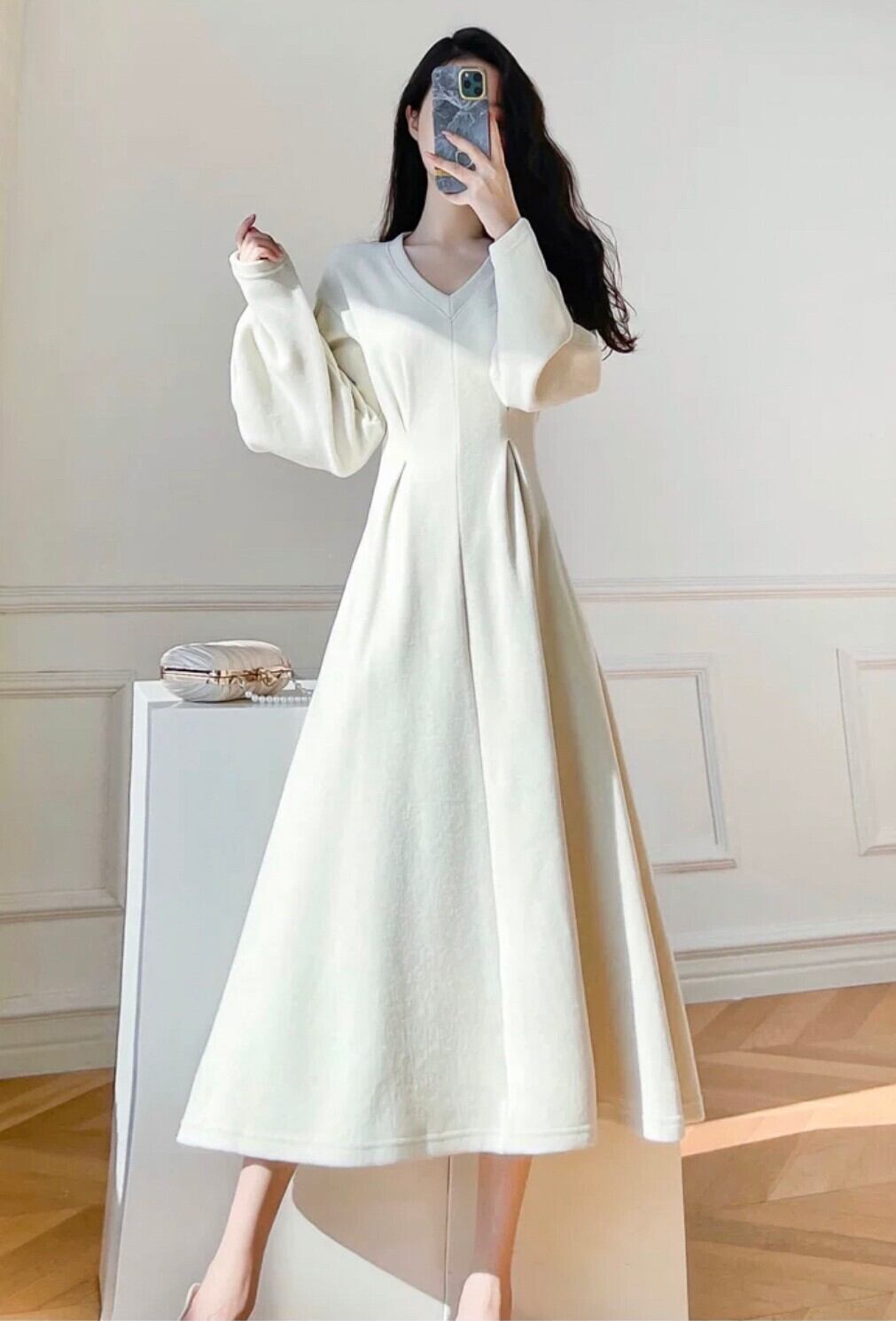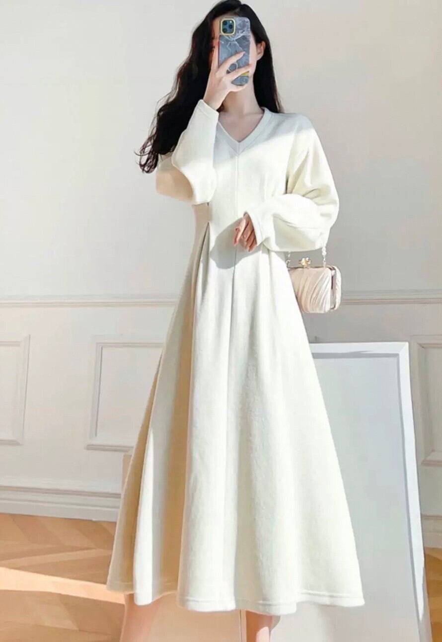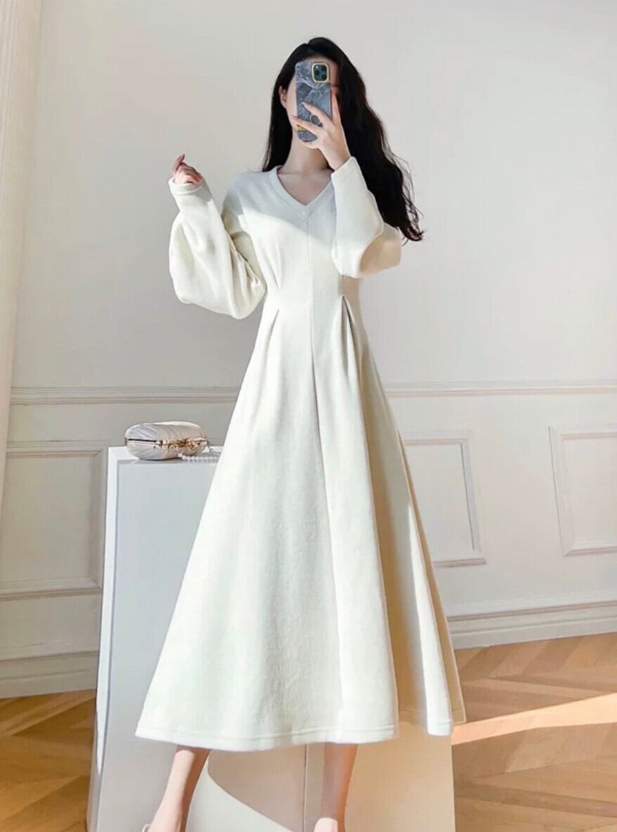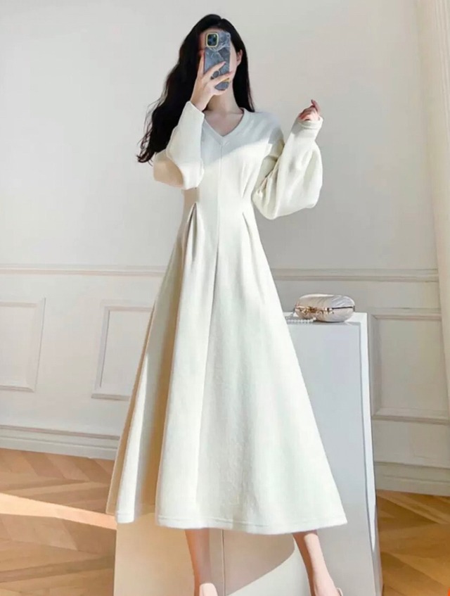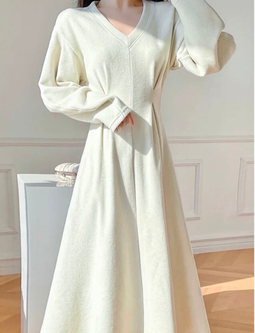 ワンピース ロング ロング丈 袖あり 長袖 Vネック スリム Aライン 大人可愛い きれいめ シンプル カジュアル 大人 上品 おしゃれ レトロ 大人可愛い 大人女子 エレガント 主役級 存在感 無地 春 秋 冬 誕生日 入学式 10代 20代 30代 40代 50代 60代 レディース ママ OL 学生 デート お泊まり 休日 イベント 旅行 ホテル 普段使い 韓国 韓国系 楽ちん モテ 高級感 サイズ S M L XL 色展開 白 ホワイト