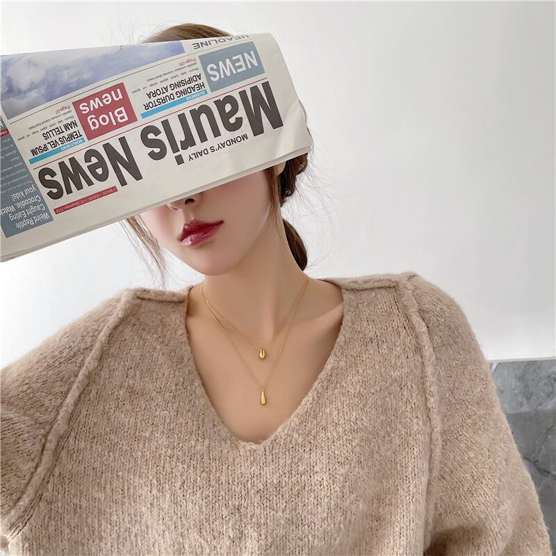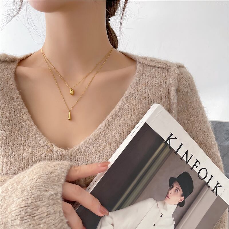 肌がきれいに見えるゴールドネックレス。
