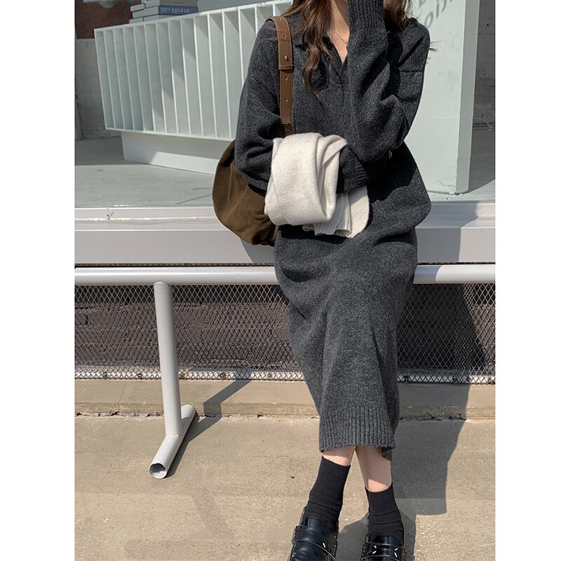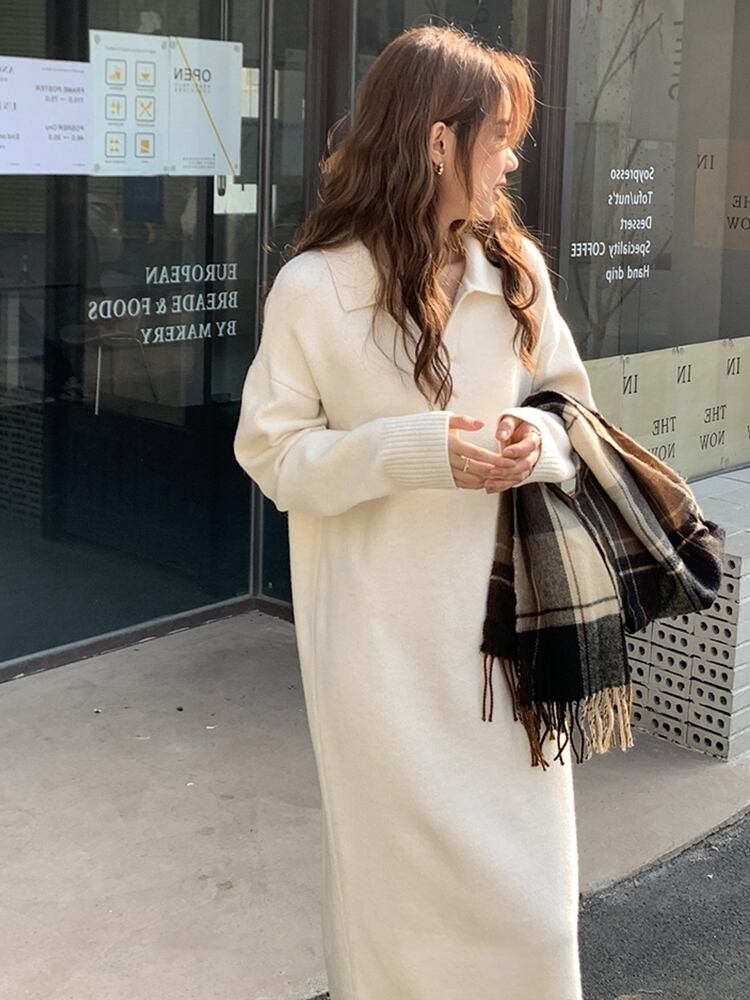ワンピース ロングスカート ニットスカート ロング ロング丈 袖あり 長袖 スリットネック 襟付き 細身 ストレート スマート かわいい 大人可愛い シンプル カジュアル 大人 おしゃれ お洒落 かっこいい 大人可愛い クール 無地 春 秋 冬10代 20代 30代 40代 レディース 女性用 マタニティ 学生 通学 デート お出かけ 女子会 お泊まり 休日 イベント リゾート 旅行 着回し 普段使い お揃い 韓国 韓国系 ファッション 楽ちん 定番 S M L XL2XL ホワイト グレー