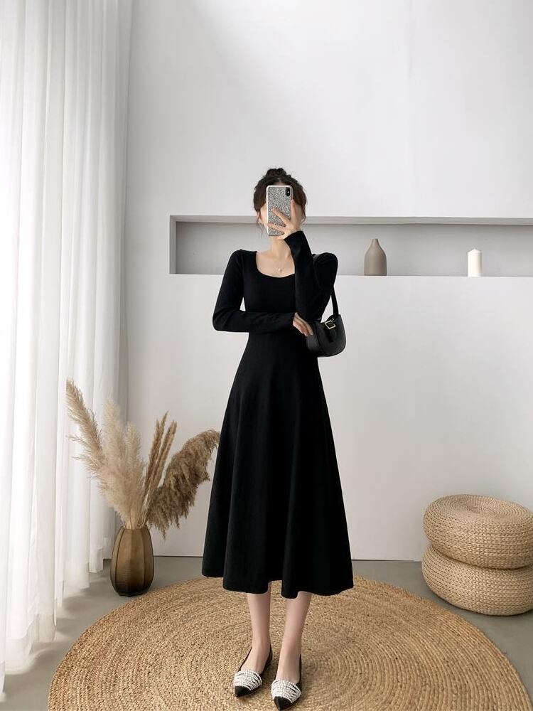 ワンピース ロングスカート ロング ロング丈 袖あり 長袖 ラウンドネックスリム タイト 細身 ストレート プリンセスライン スマート かわいい 大人っぽい シンプル カジュアル フォーマル 大人 おしゃれ お洒落 かっこいい 大人可愛い 無地 春 秋 冬10代 20代 30代 40代 レディース 女性用 通勤 デート お出かけ 女子会 お泊まり 休日 イベント リゾート 旅行 着回し 普段使い お揃い 韓国 韓国系 ファッション S M L XL キャラメル ブラック