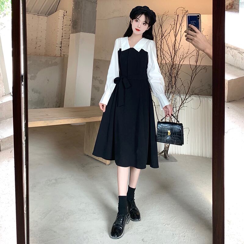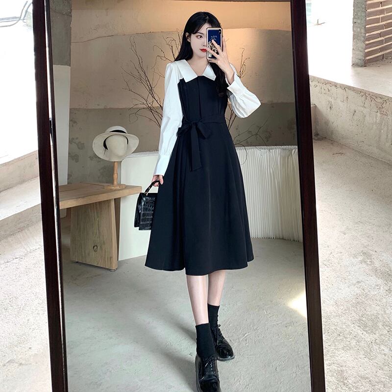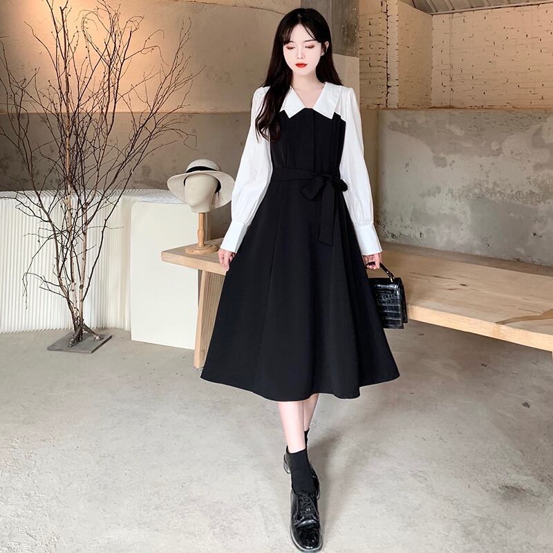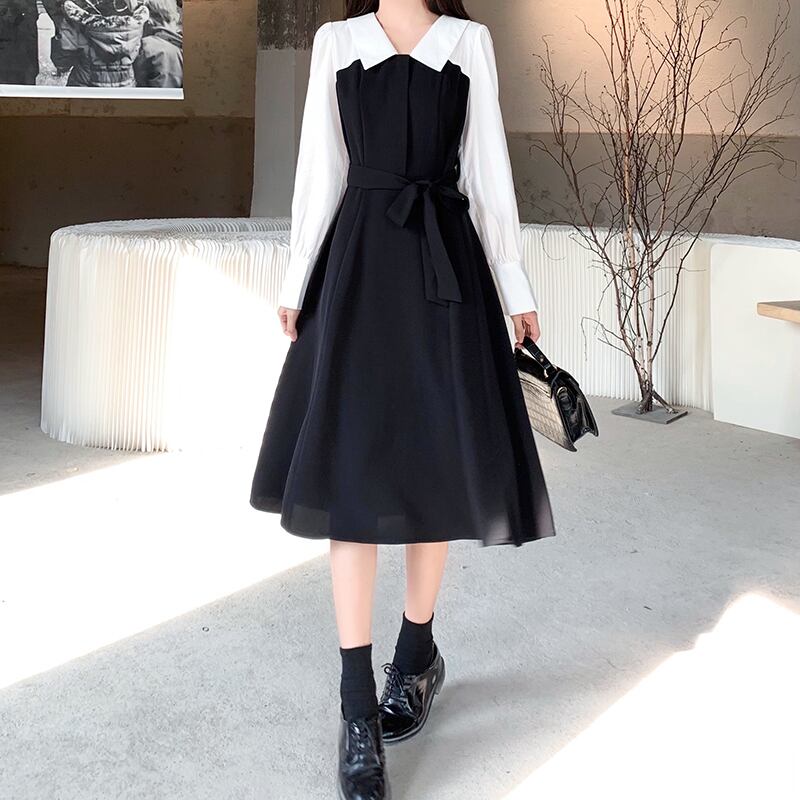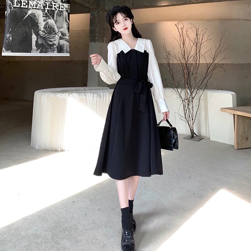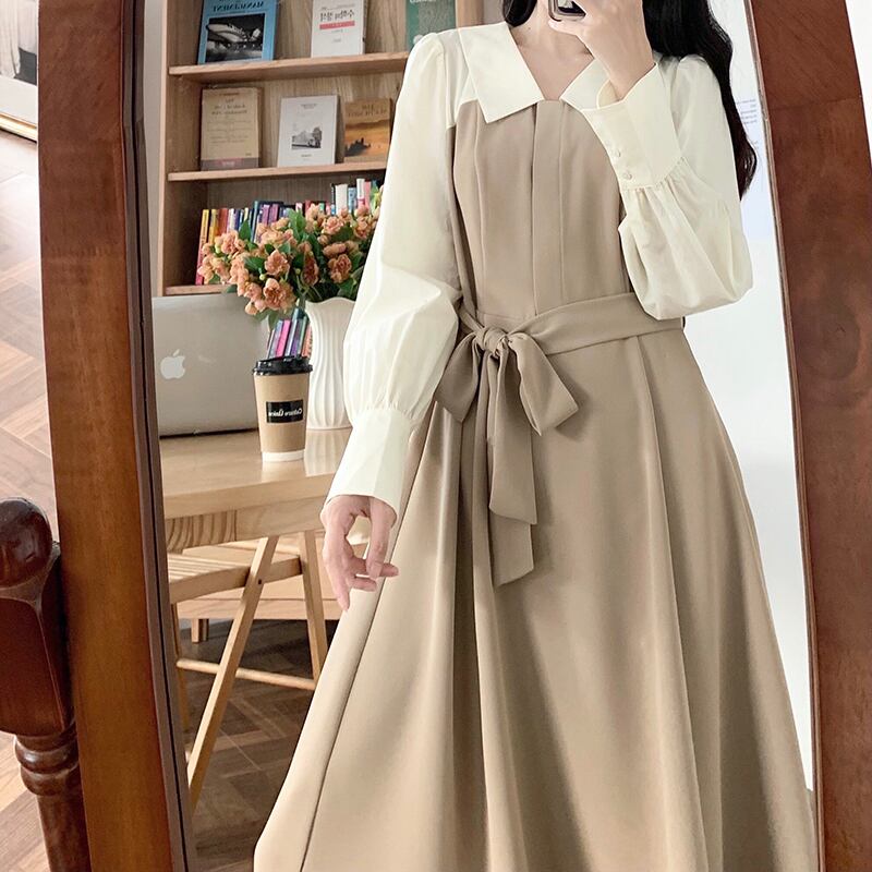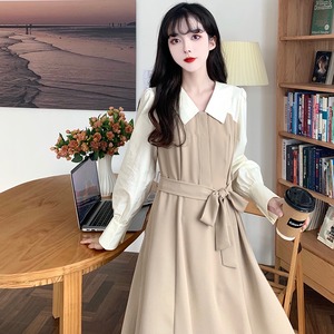ワンピース レトロワンピース ひざ下ワンピース 膝下丈 袖あり 長袖 萌袖 Vネック 襟あり プリンセスライン かわいい 可愛い シンプル フォーマル おしゃれ お洒落 アジアン キュート 個性的 主役級 無地 春 秋 冬 誕生日 パーティー ガーデン お食事10代 20代 レディース 女性用 学生 通学 デート お出かけ 女子会 休日 イベント リゾート 旅行 着回し 重ね着 お揃い 双子 韓国 M L XL 2XL ブラック ベージュ
