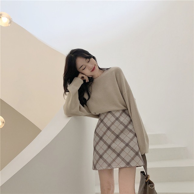 トップス スカート セーター ショート ショート丈 袖あり 長袖 Aライン ハイウエスト 上下セット かわいい 大人可愛い きれいめ シンプル カジュアル 大人 上品 おしゃれ レトロ 大人女子 こなれ感 無地 柄 格子柄 秋 冬 10代 20代 30代 レディース 女性用 デート お出かけ 着回し 普段使い コーデ S M L XL 2点セット お得