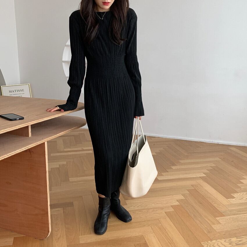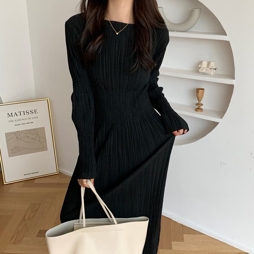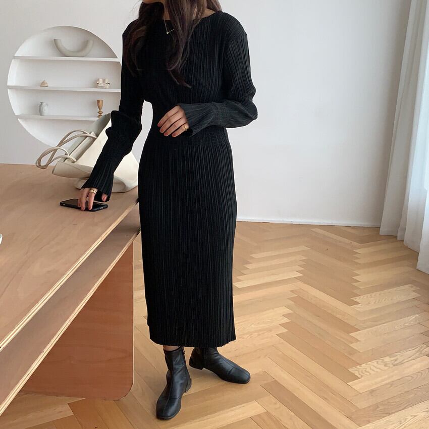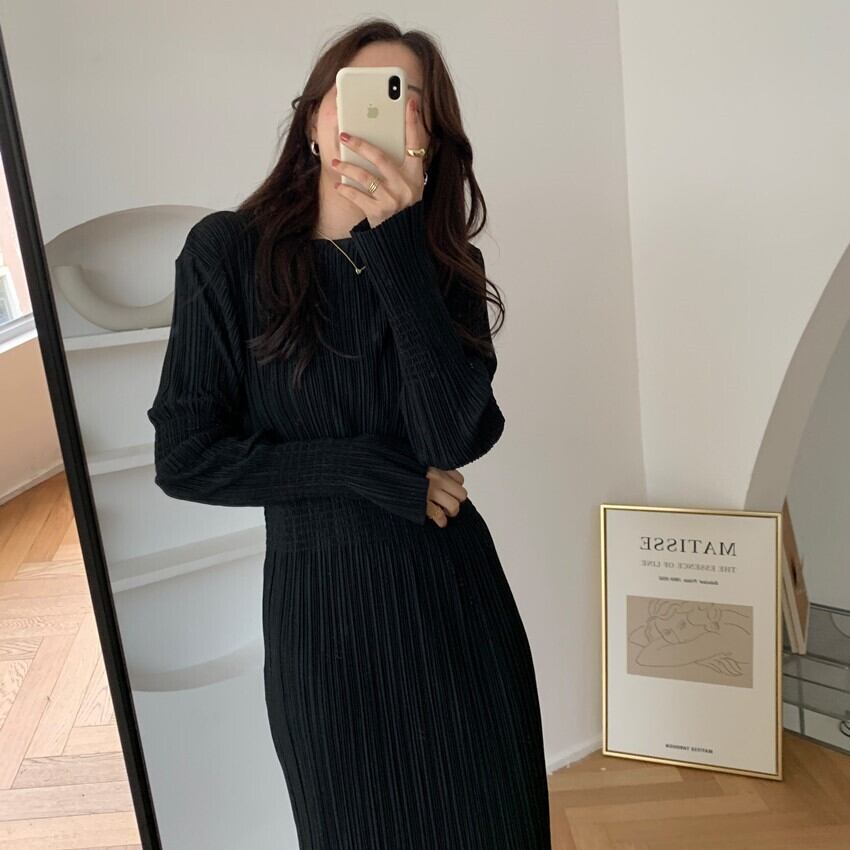 ワンピース ロング ロング丈 袖あり 長袖 ラウンドネック タイト 細身 大人可愛い きれいめ シンプル 大人 上品 おしゃれ レトロ 大人可愛い 大人女子 こなれ感 ラフ クール モード系 エレガント 無地 秋 冬 10代 20代 30代 40代 50代 レディース 女性用 OL 学生 デート 休日 イベント リゾート 旅行 ホテル レストラン 普段使い 韓国 韓国系 ファッション コーデ スタイル モテ プレゼント 流行 インスタ映え S M L XL フリーサイズ 黒 ブラック