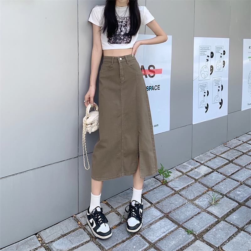 スカート デニムスカート ミモレ ミモレ丈 Aライン ハイウエスト かわいい 大人可愛い きれいめ シンプル カジュアル 大人 上品 おしゃれ お洒落 かっこいい レトロ 無地 秋 冬 10代 20代 30代 レディース 女性用 学生 通学 デート お出かけ 公園デビュー 女子会 普段使い ファッション コーデ スタイル S M L 色展開 ホワイト ブラウン