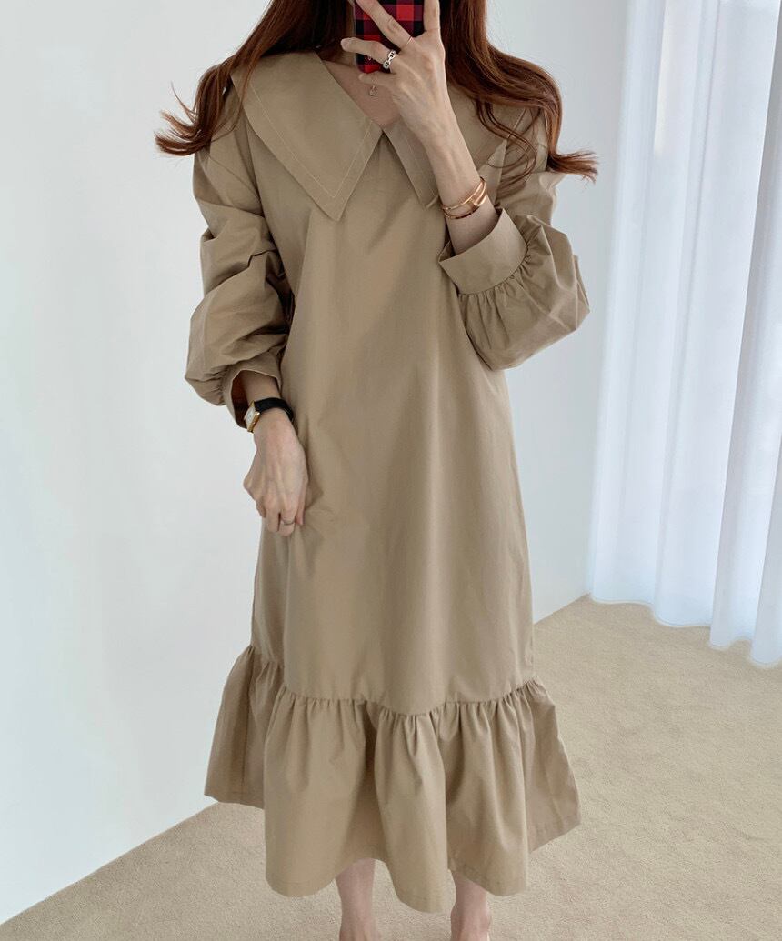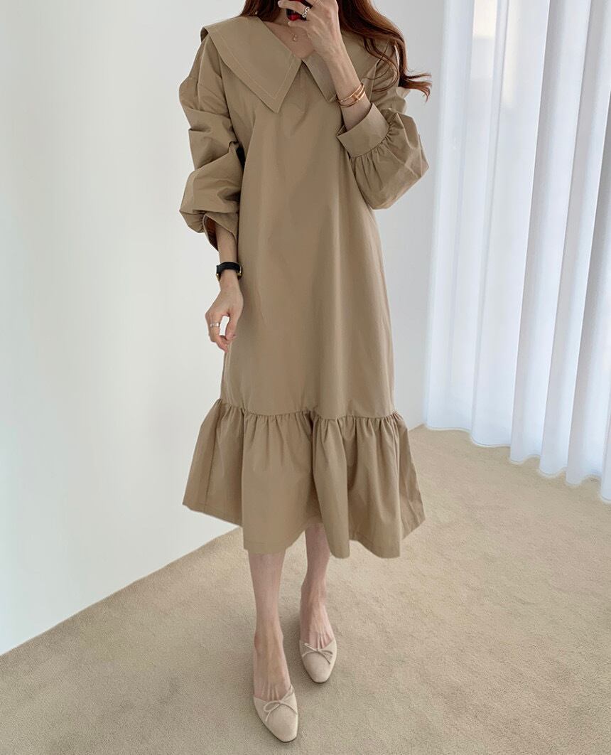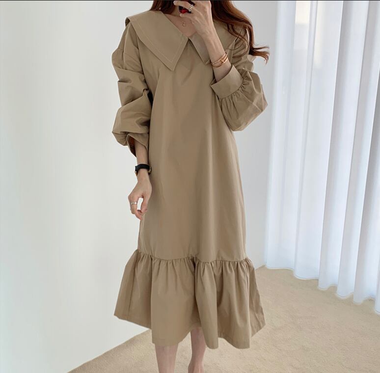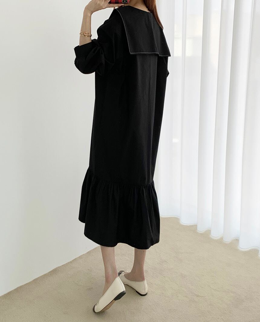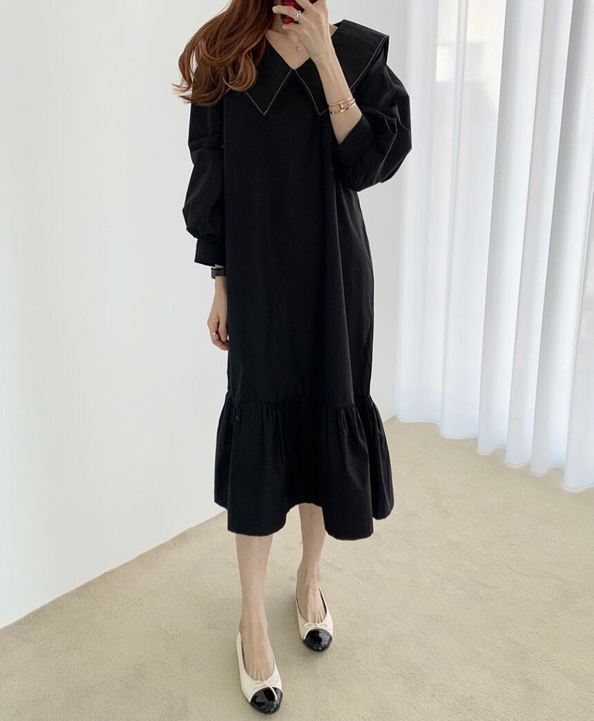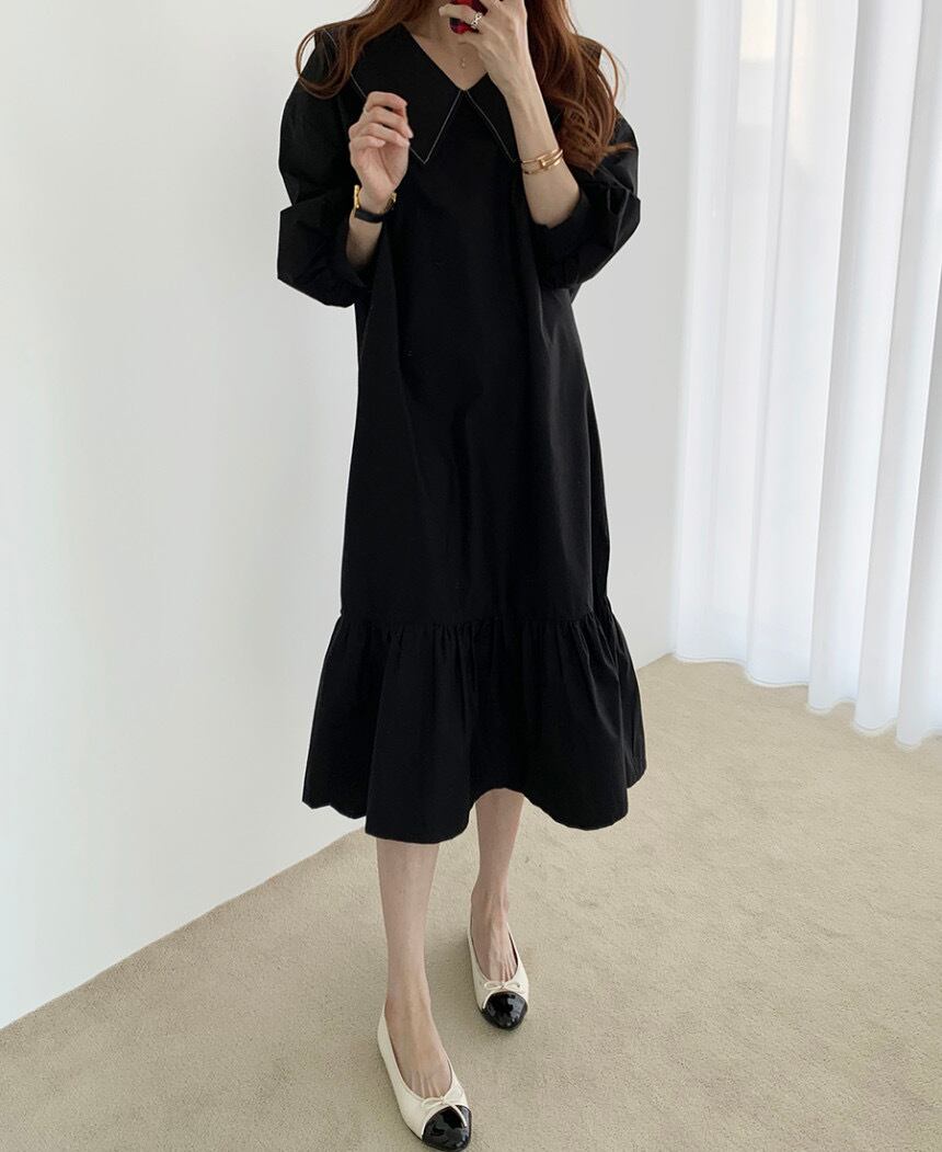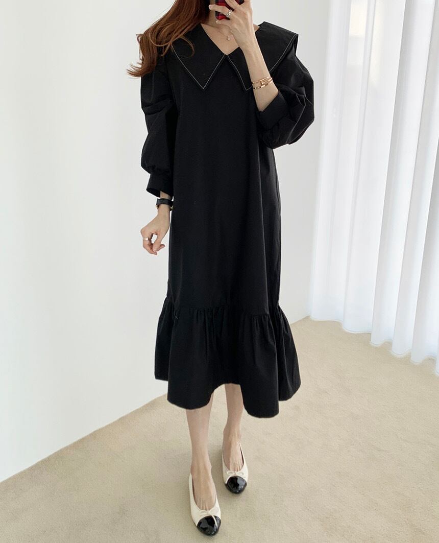 セーラーカラーワンピース 膝下 Aラインドレス ブラックワンピース ワンピース 膝下 袖あり 長袖 パブスリーブ 襟付き ビッグカラー Vネック マーメイド かわいい 大人可愛い 大人 おしゃれ お洒落 かっこいい 大人可愛い エレガント 無地 チェック柄10代 20代 30代 レディース 女性用 デート お出かけ 女子会 インスタ映え 春 秋 冬 1.5次会 パーティ ハロウィン クリスマス 舞台 撮影 S M L XL ブラック カーキ