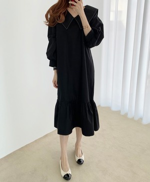 大きめのフリルでマーメイドのようなデザインに見えるワンピースです。