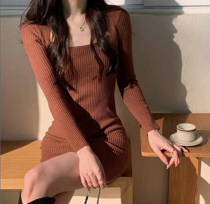 リブワンピース ミニスカート ミニ ミニ丈 ショート 膝上 袖あり 長袖 スクエアネック 襟なし スリム タイト 細身 ストレート スマート セクシー 大人 シンプル カジュアル 大人 おしゃれ お洒落 かっこいい 大人可愛い スポーティー クール 無地 春 秋 冬 10代 20代 レディース 女性用 女の子 学生 通学 デート お出かけ 女子会 お泊まり 休日 イベント リゾート 旅行 着回し 普段使い お揃い 韓国 韓国系 ファッション 定番 S M L ホワイト ブラウン ブラック ベージュ
